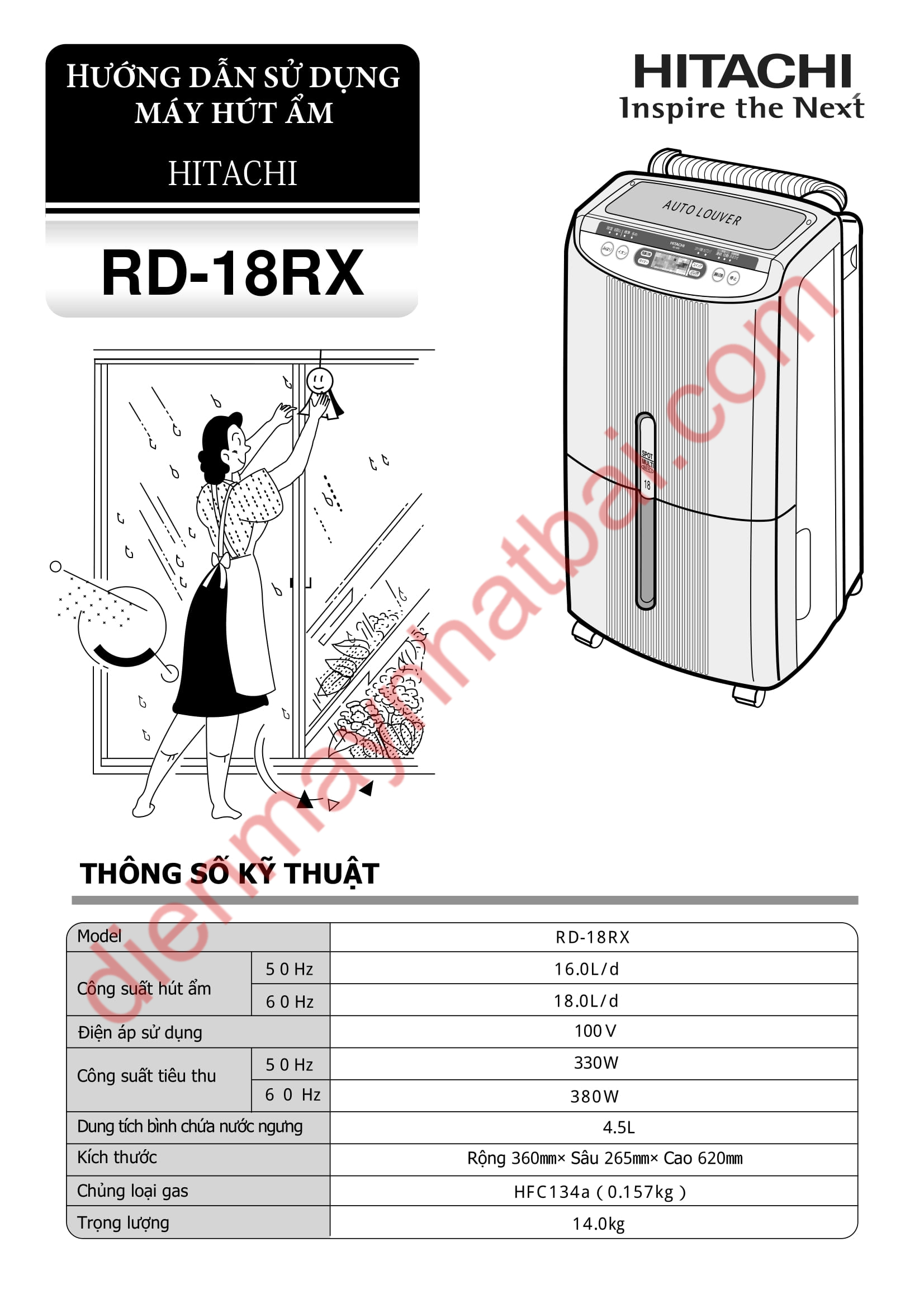 Hướng dẫn sử dụng máy hút ẩm Hitachi RD-18RX