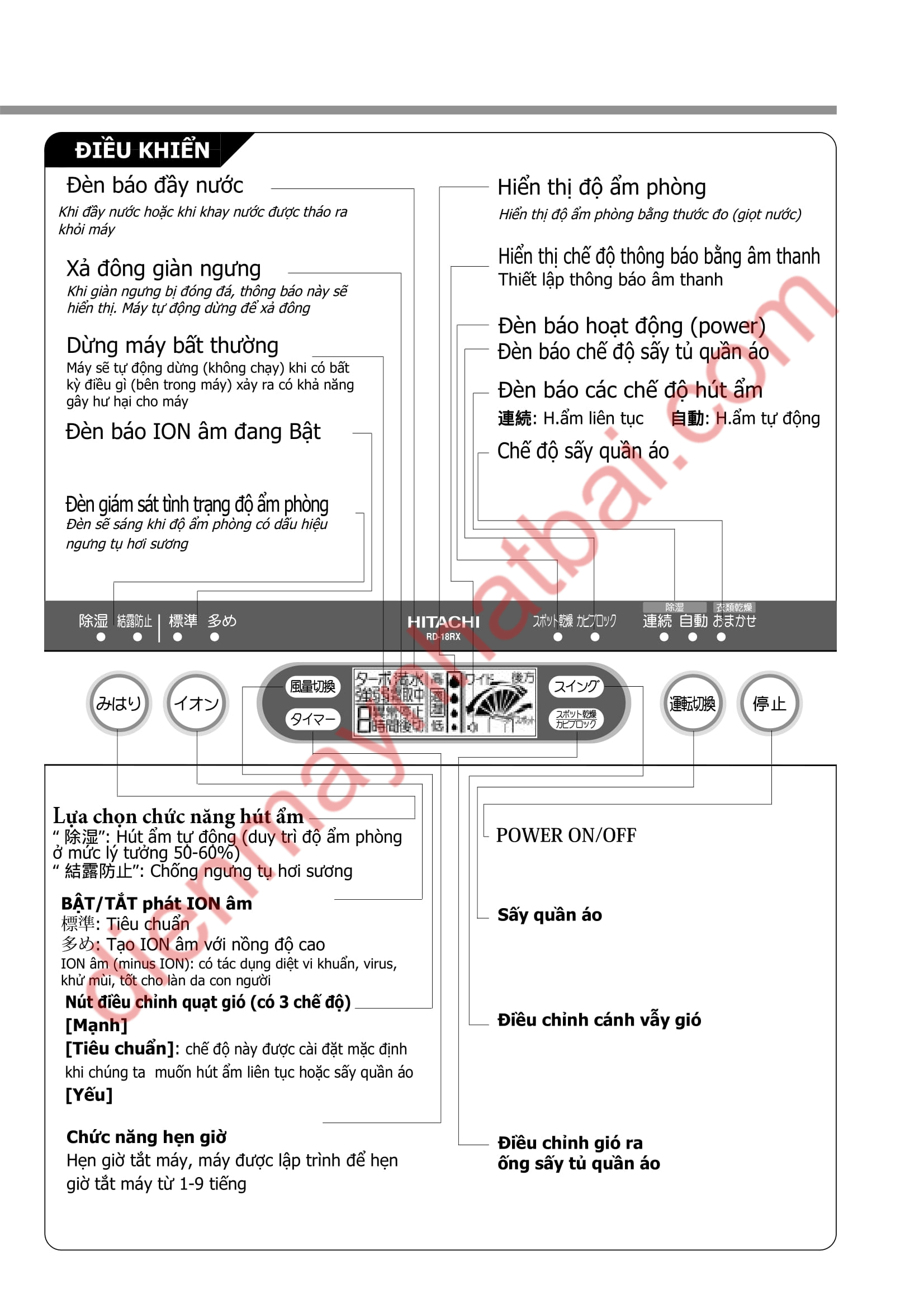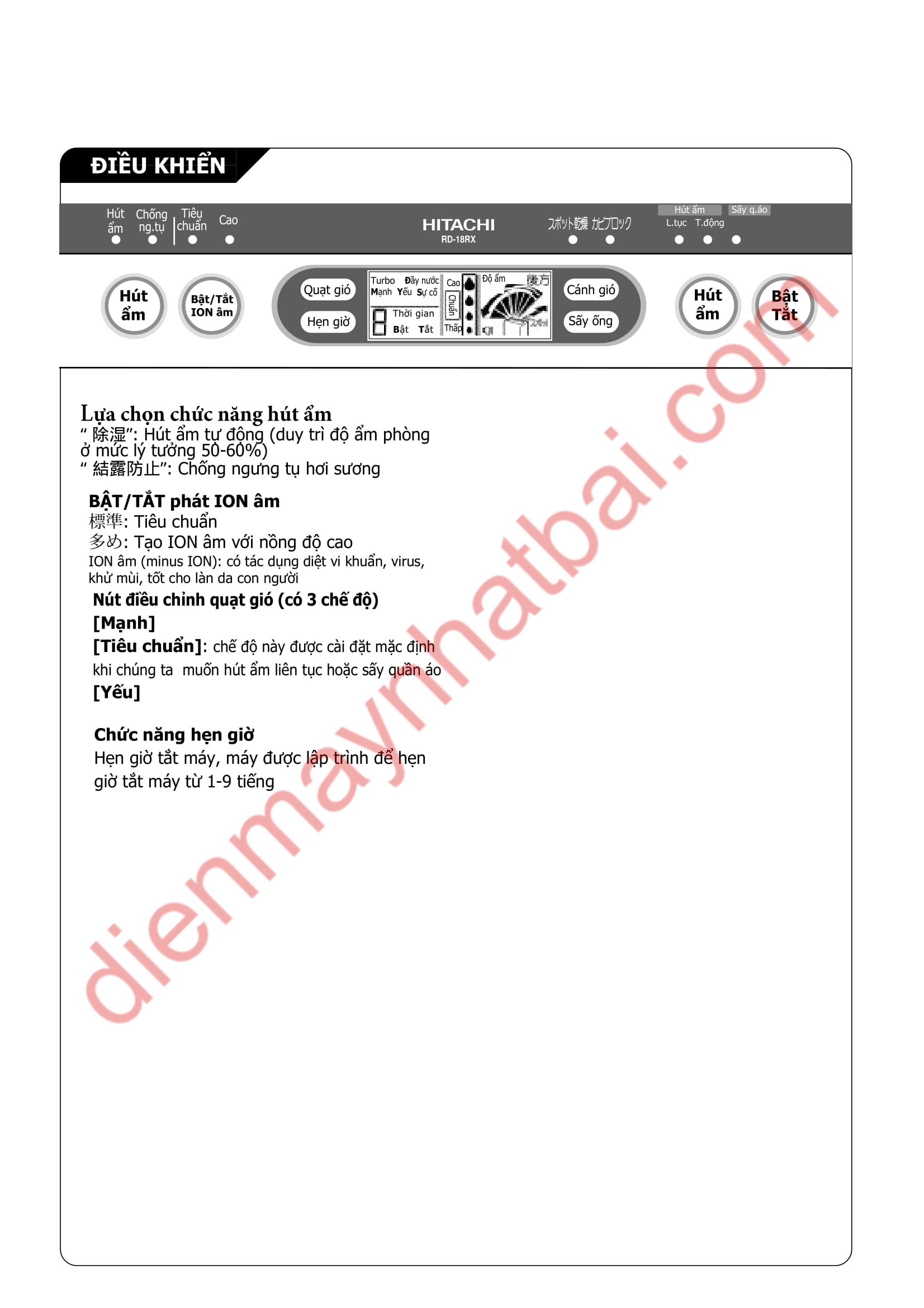 dienmaynhatbai.com chia sẻ hướng dẫn sử dụng máy hút ẩm Hitachi RD-18RX được dịch nguyên văn từ catalogue của nhà sản xuất.