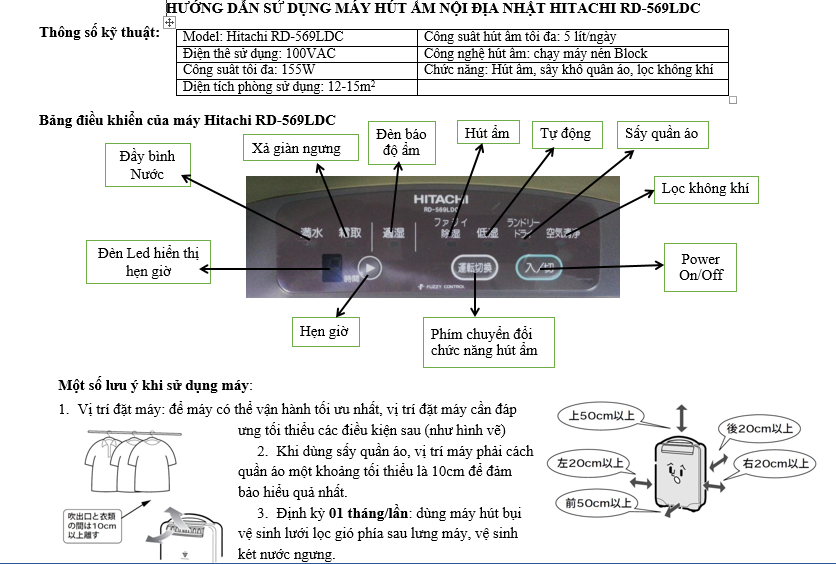 Hướng dẫn sử dụng máy hút ẩm Hitachi RD-569LDC