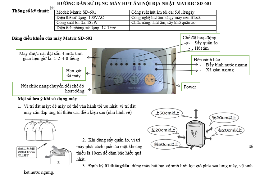 Hướng dẫn sử dụng máy hút ẩm Matric SD-601