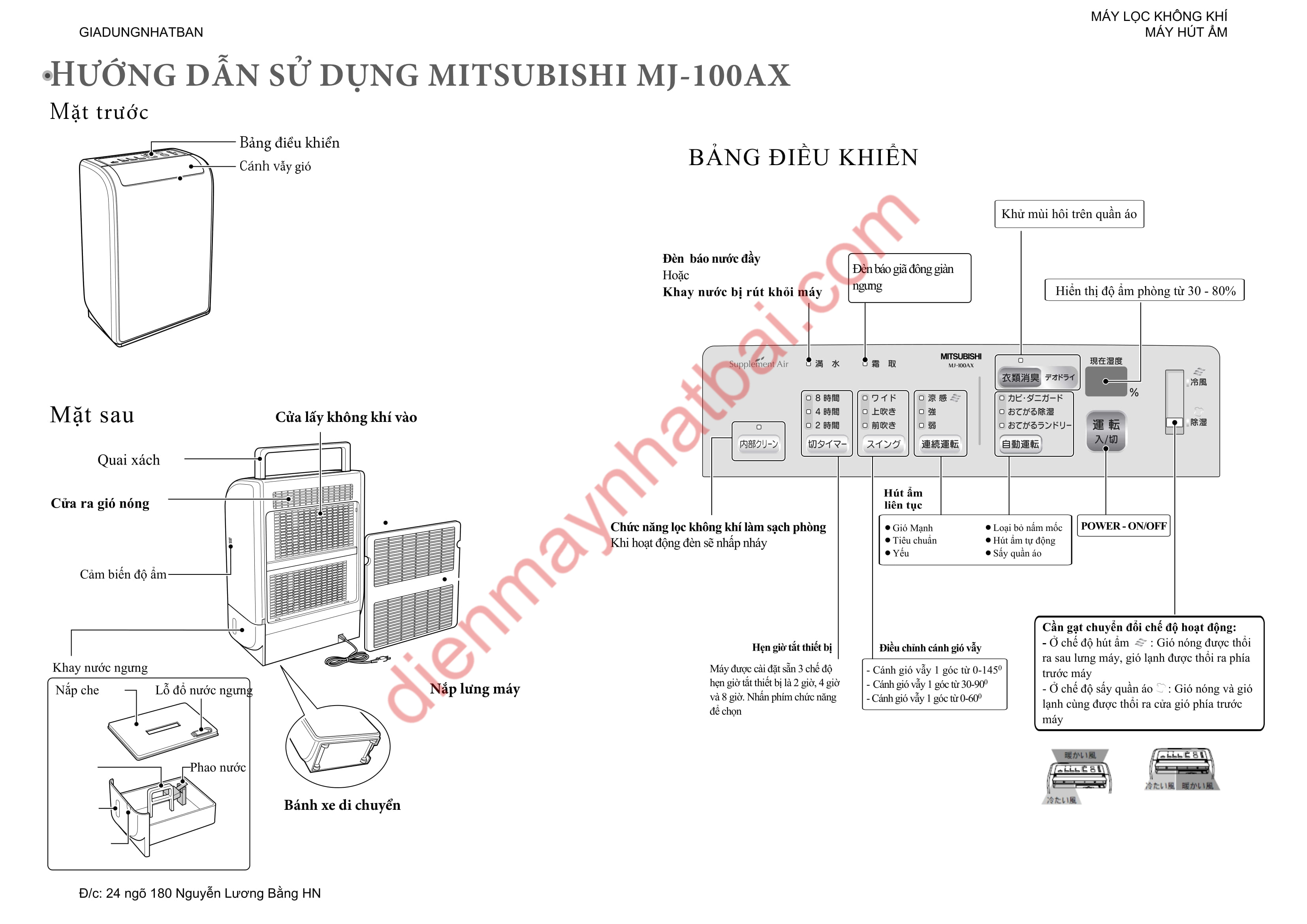 dienmaynhatbai.com chia sẻ hướng dẫn sử dụng máy hút ẩm Mitsubishi MJ-100AX được dịch nguyên văn từ catalogue của nhà sản xuất.