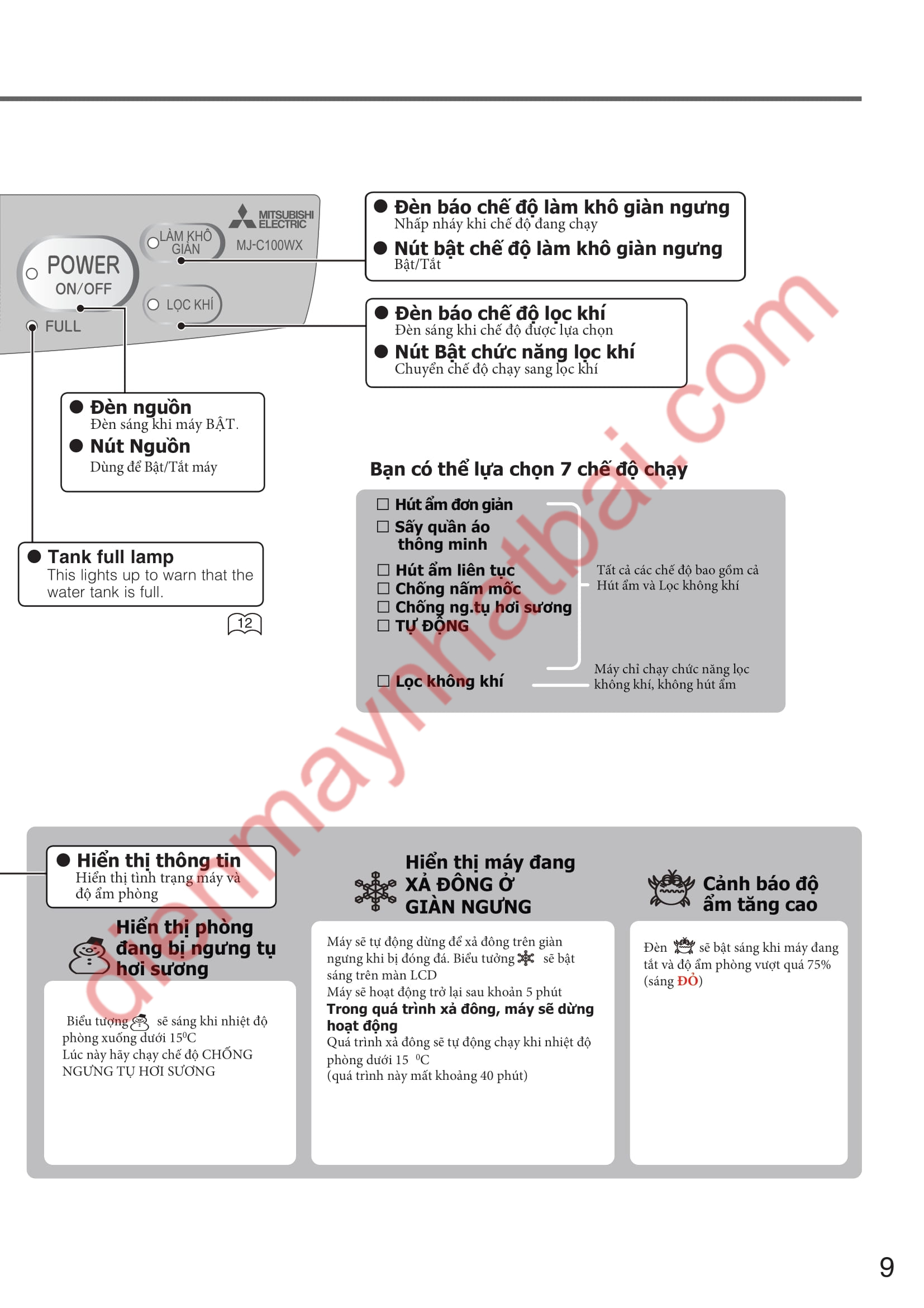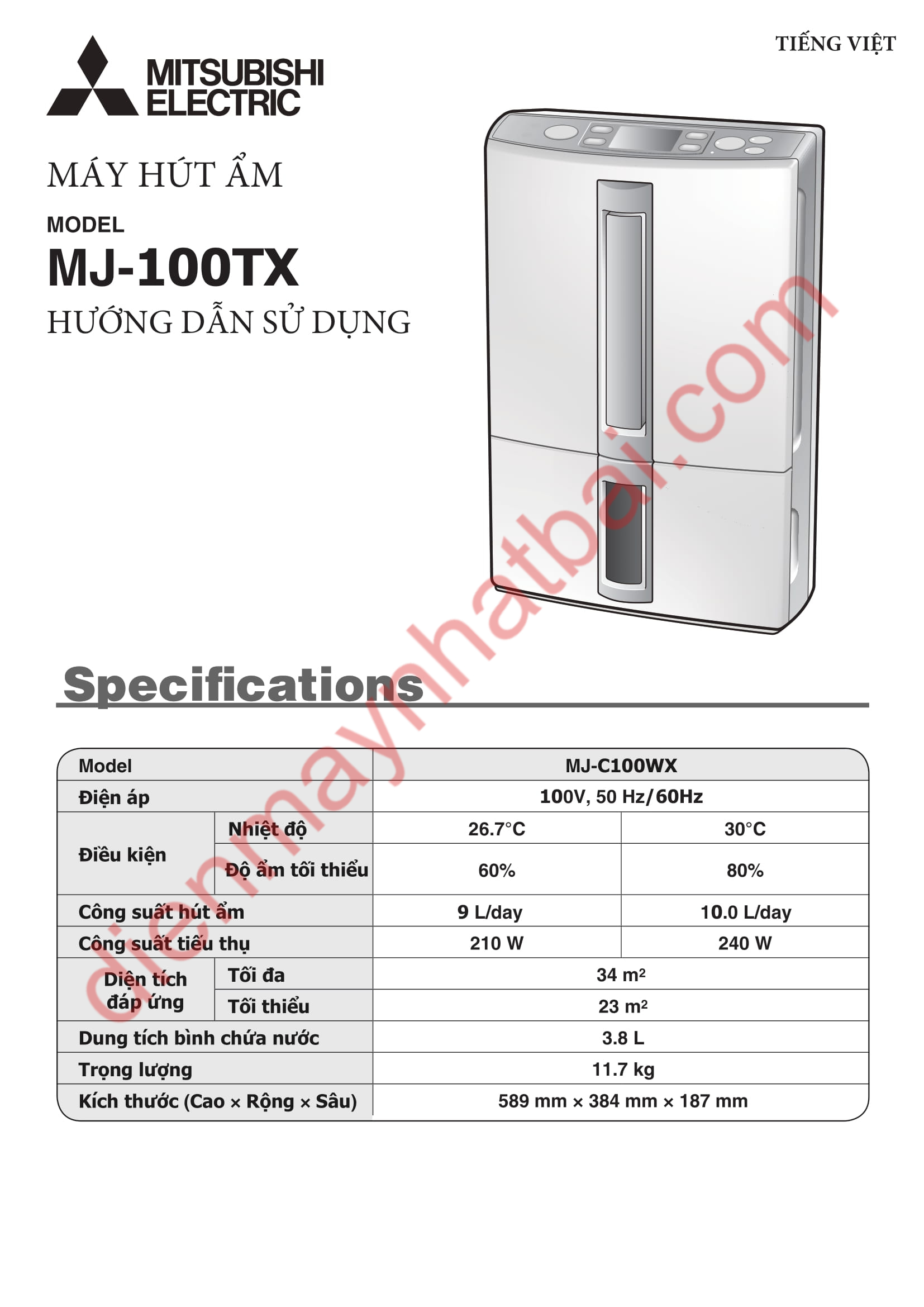 Hướng dẫn sử dụng máy hút ẩm Mitsubishi MJ-100TX