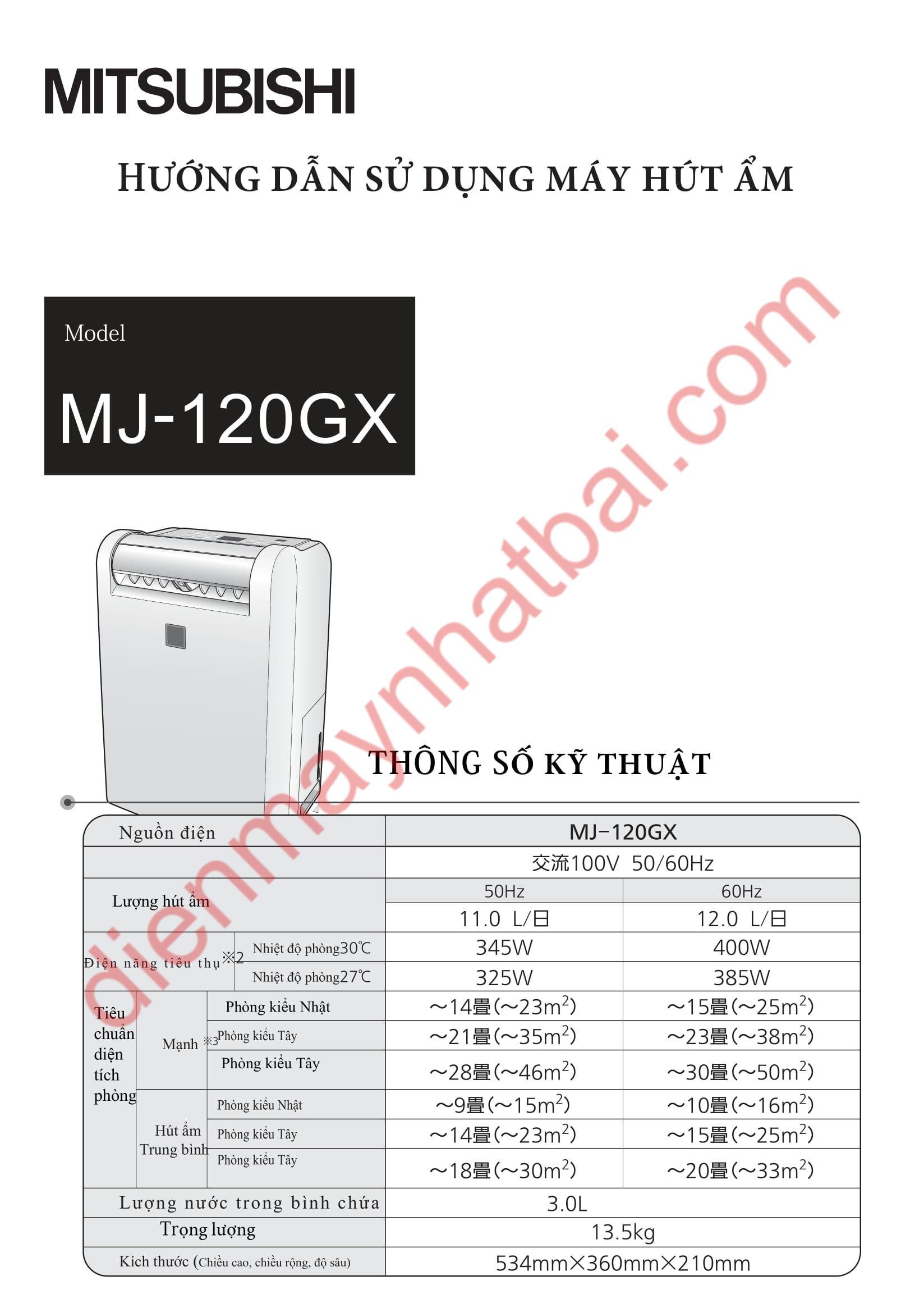 Hướng dẫn sử dụng máy hút ẩm Mitsubishi MJ-120GX