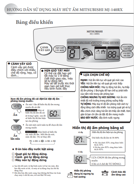 Hướng dẫn sử dụng máy hút ẩm Mitsubishi MJ-140RX