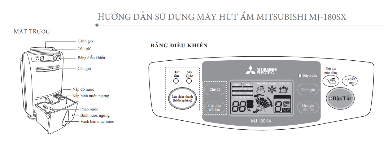 Hướng dẫn sử dụng máy hút ẩm Mitsubishi MJ-180KX