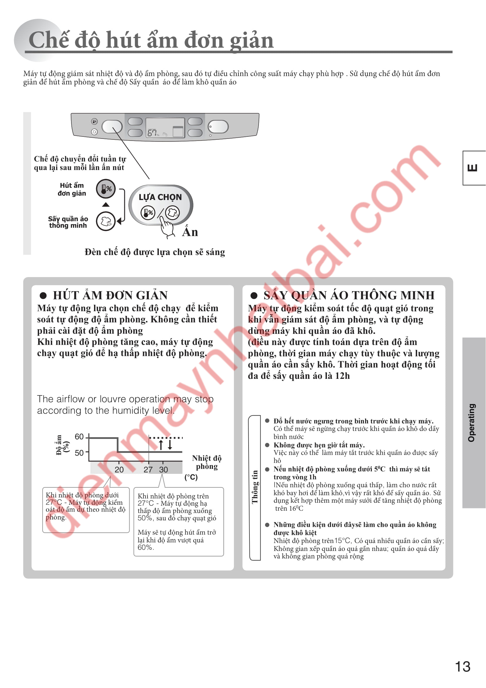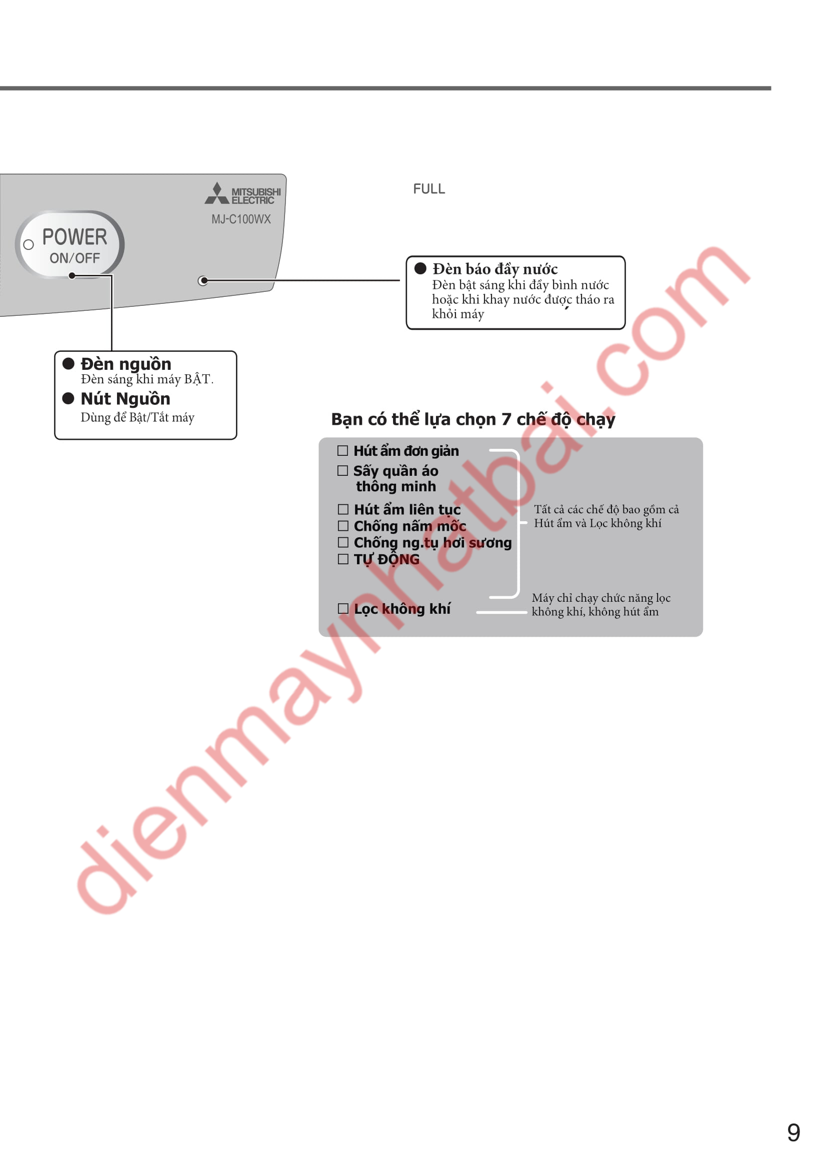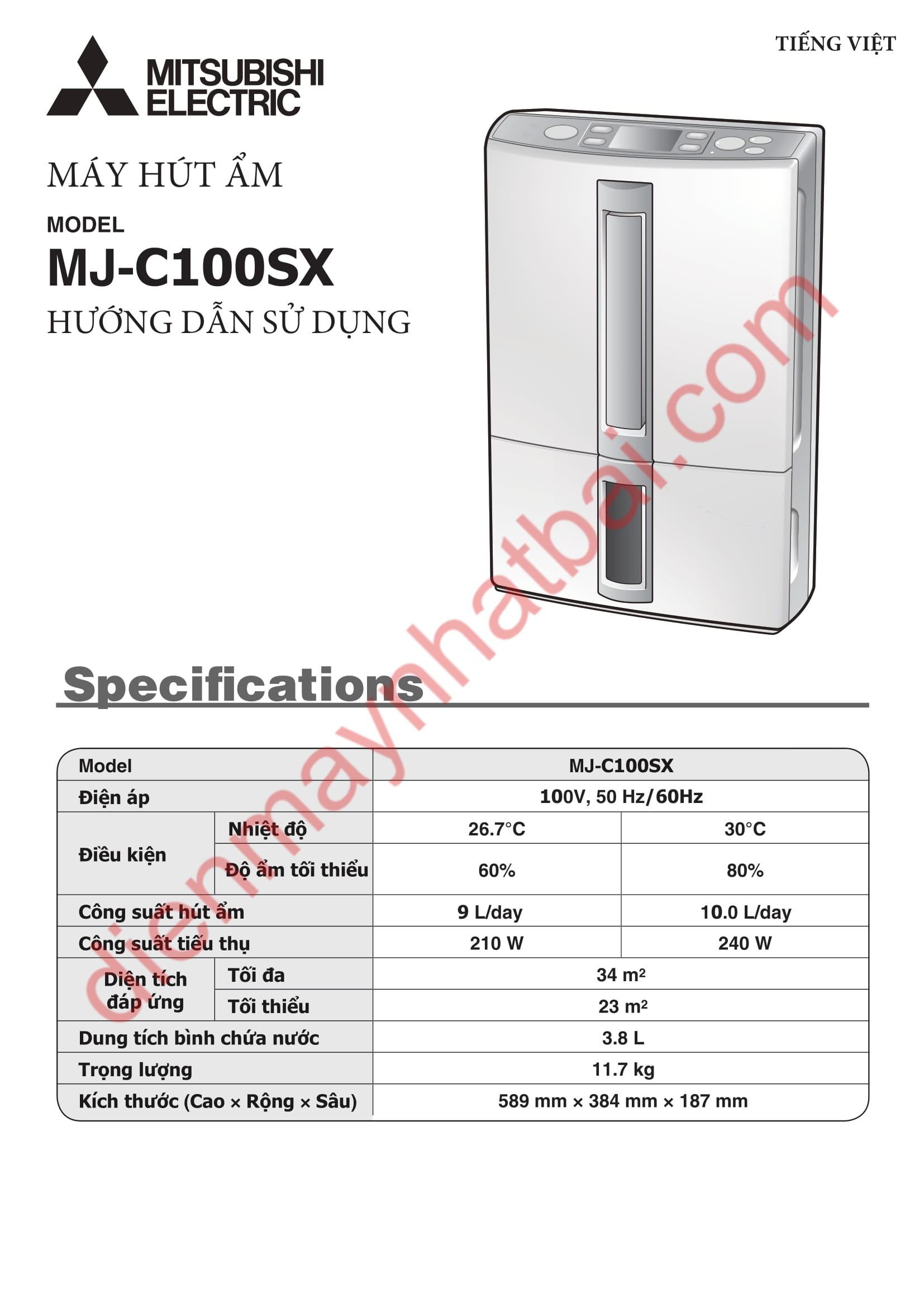 Hướng dẫn sử dụng máy hút ẩm Mitsubishi MJ-C100SX