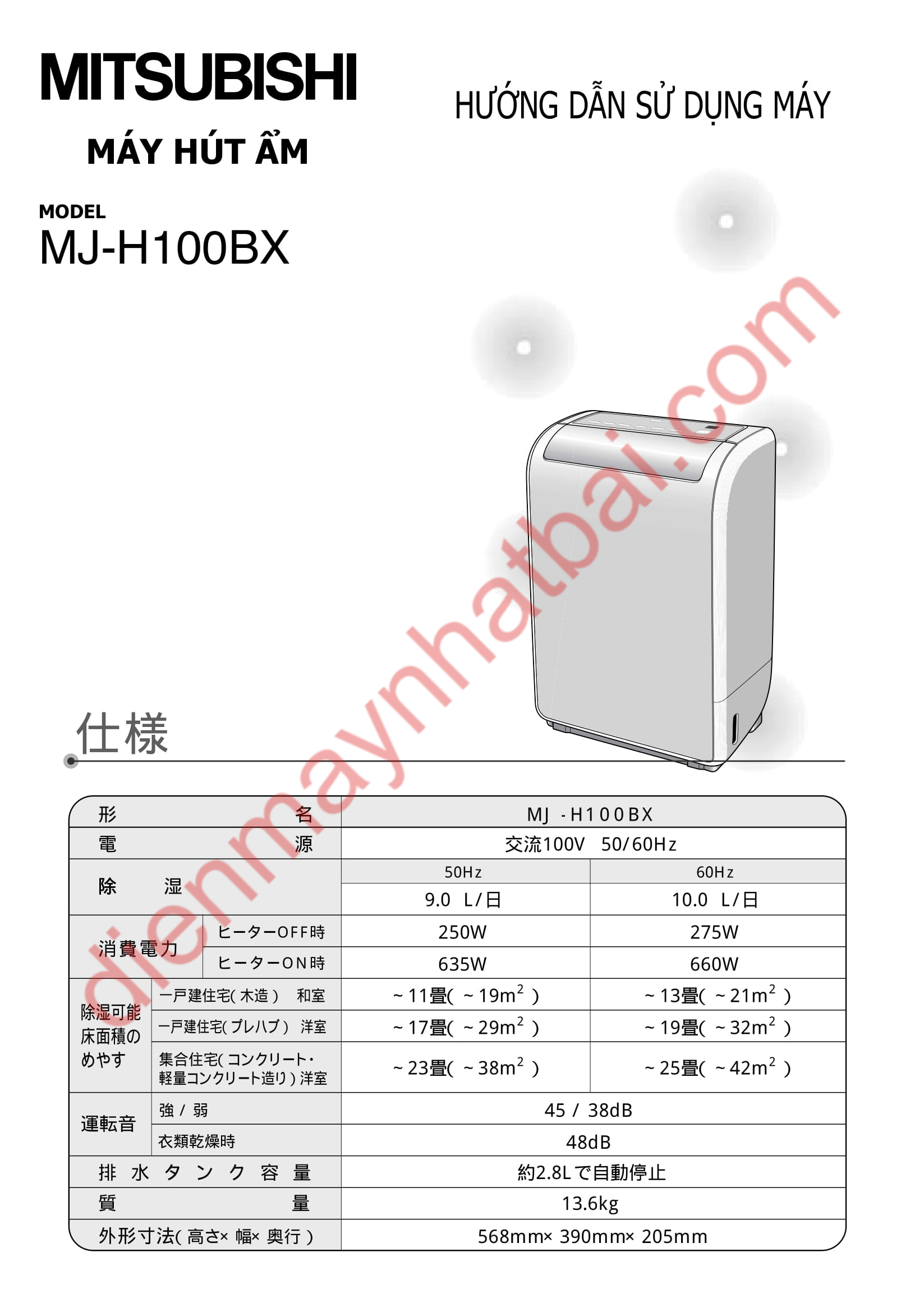 Hướng dẫn sử dụng máy hút ẩm Mitsubishi MJ-H100BX