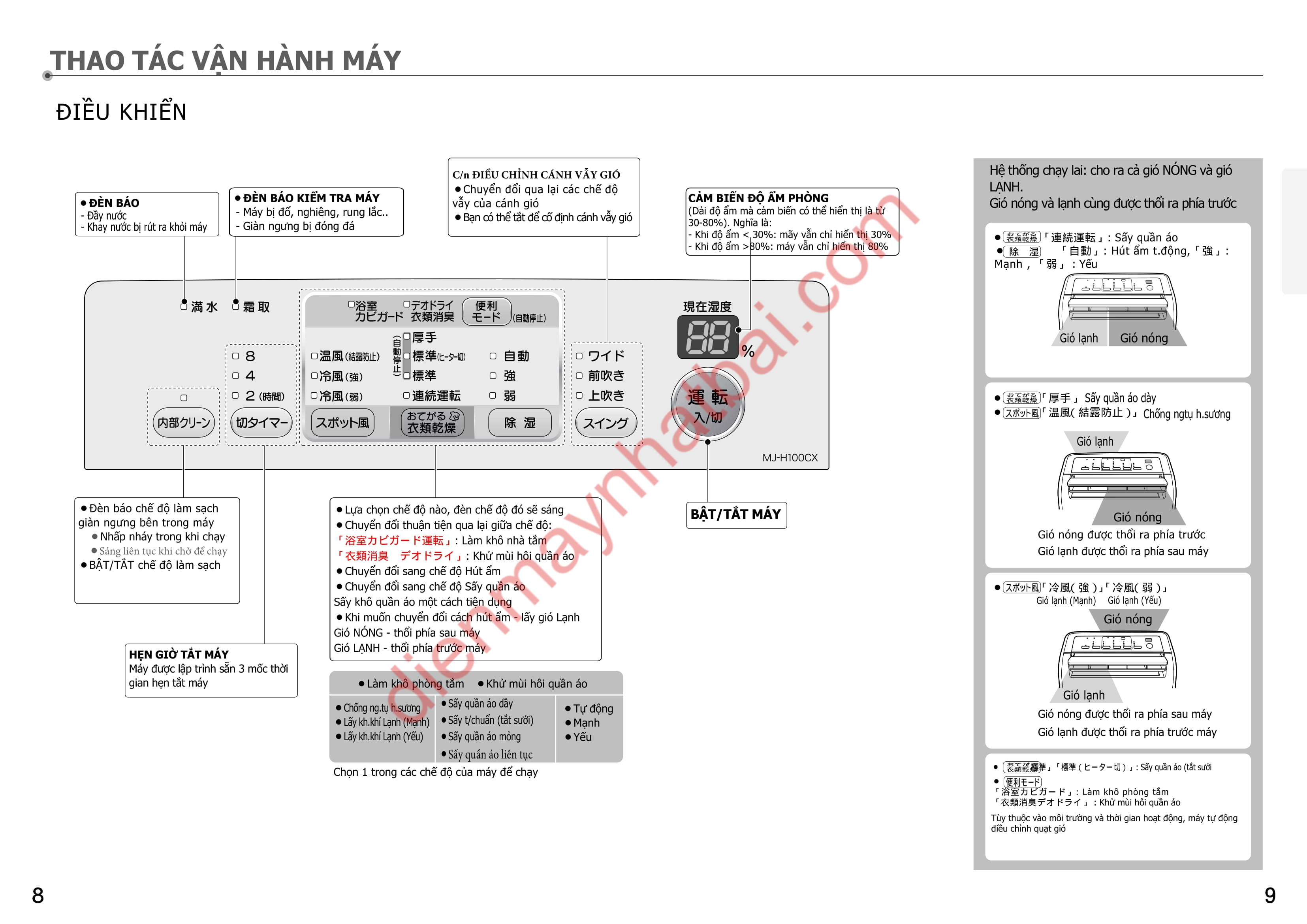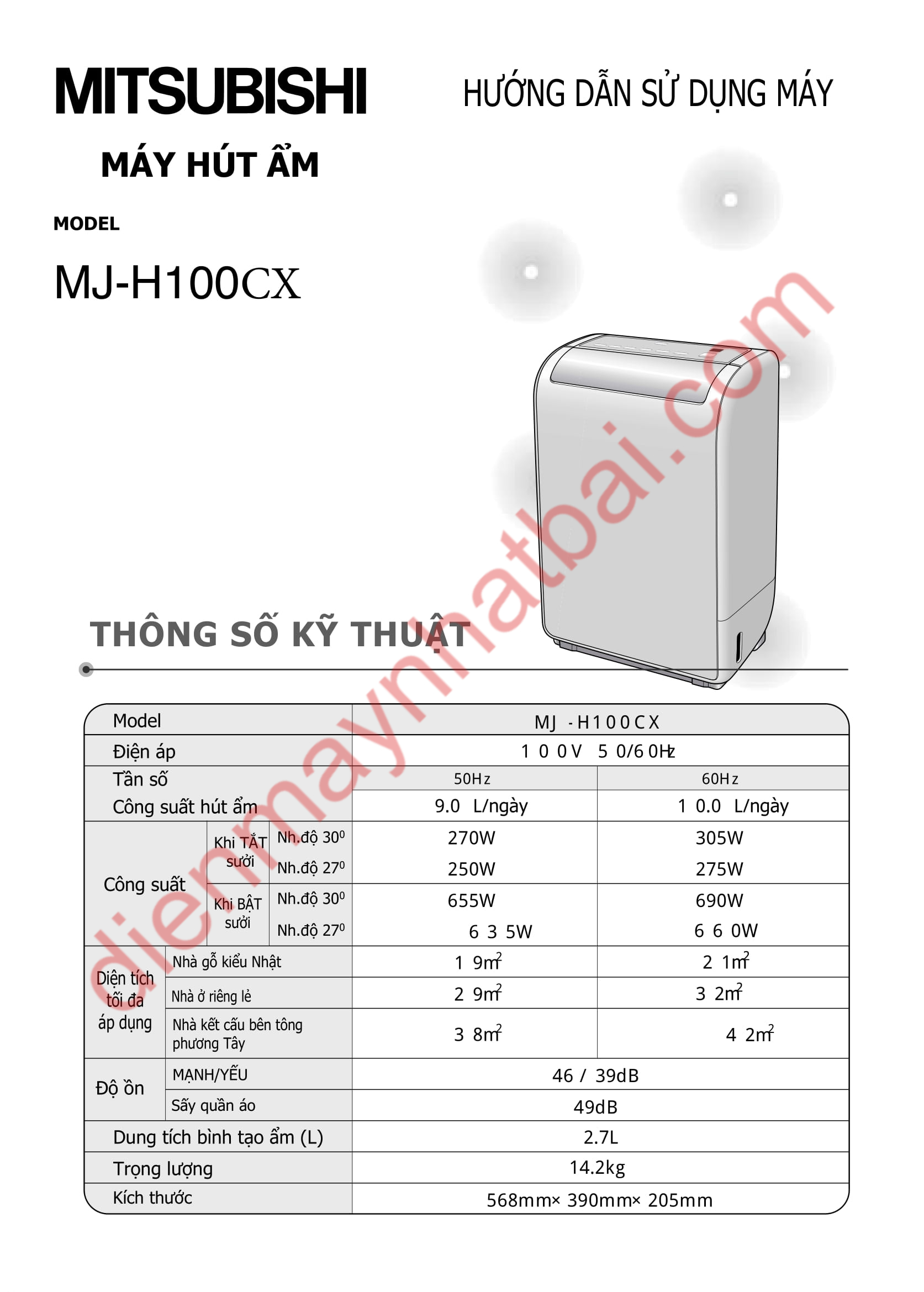 Hướng dẫn sử dụng máy hút ẩm Mitsubishi MJ-H100CX