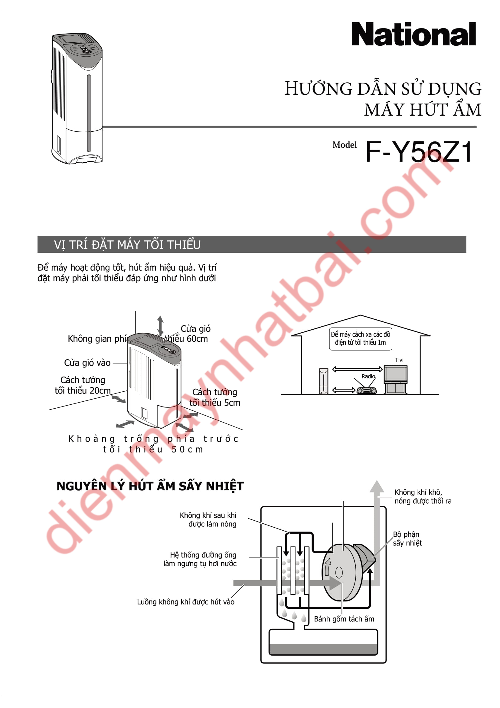Hướng dẫn sử dụng máy hút ẩm National F-Y56Z1