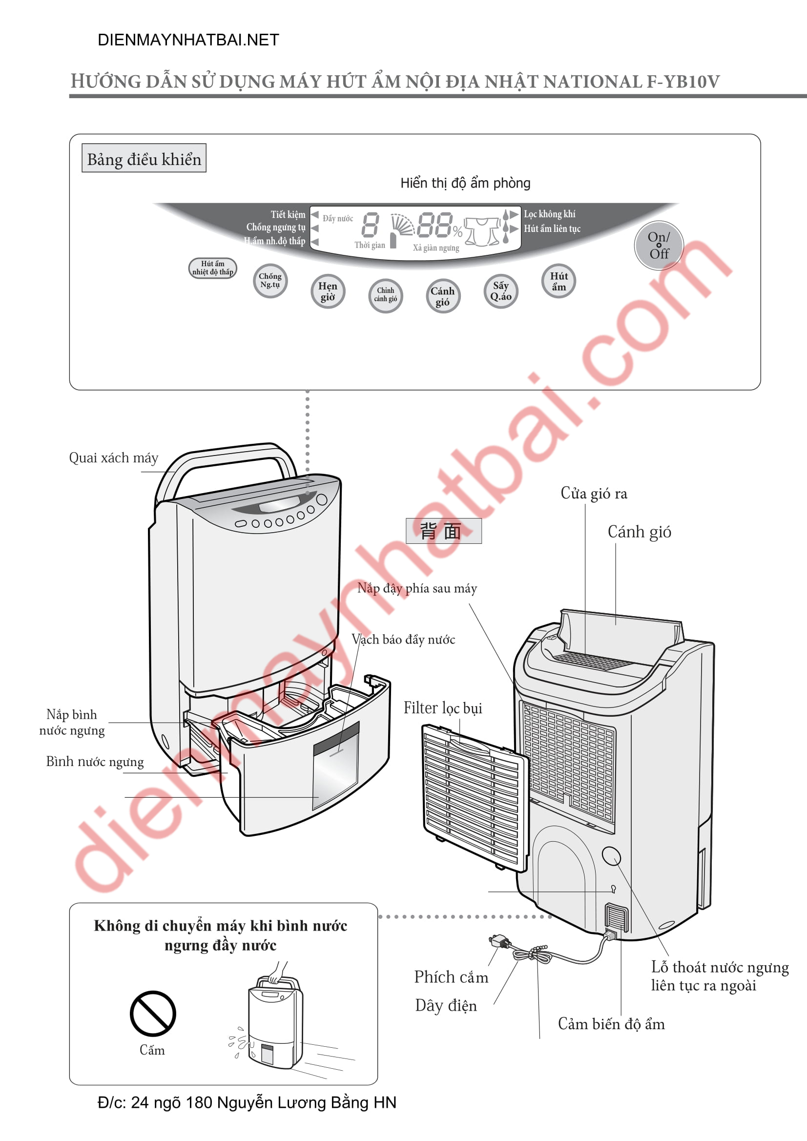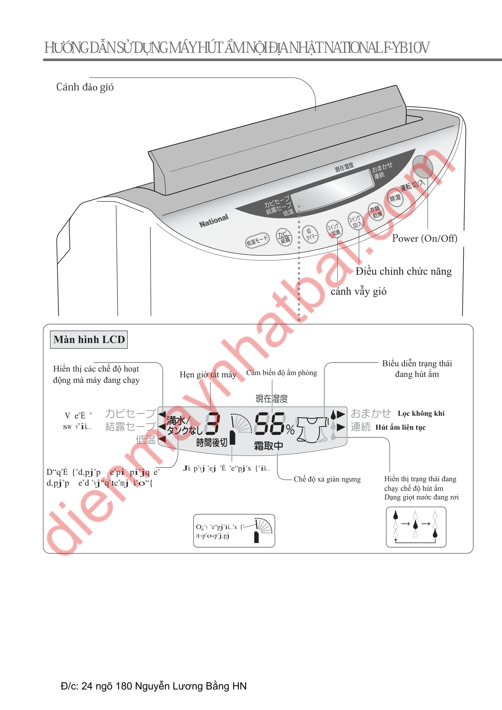 Hướng dẫn sử dụng máy hút ẩm National F-YB10V