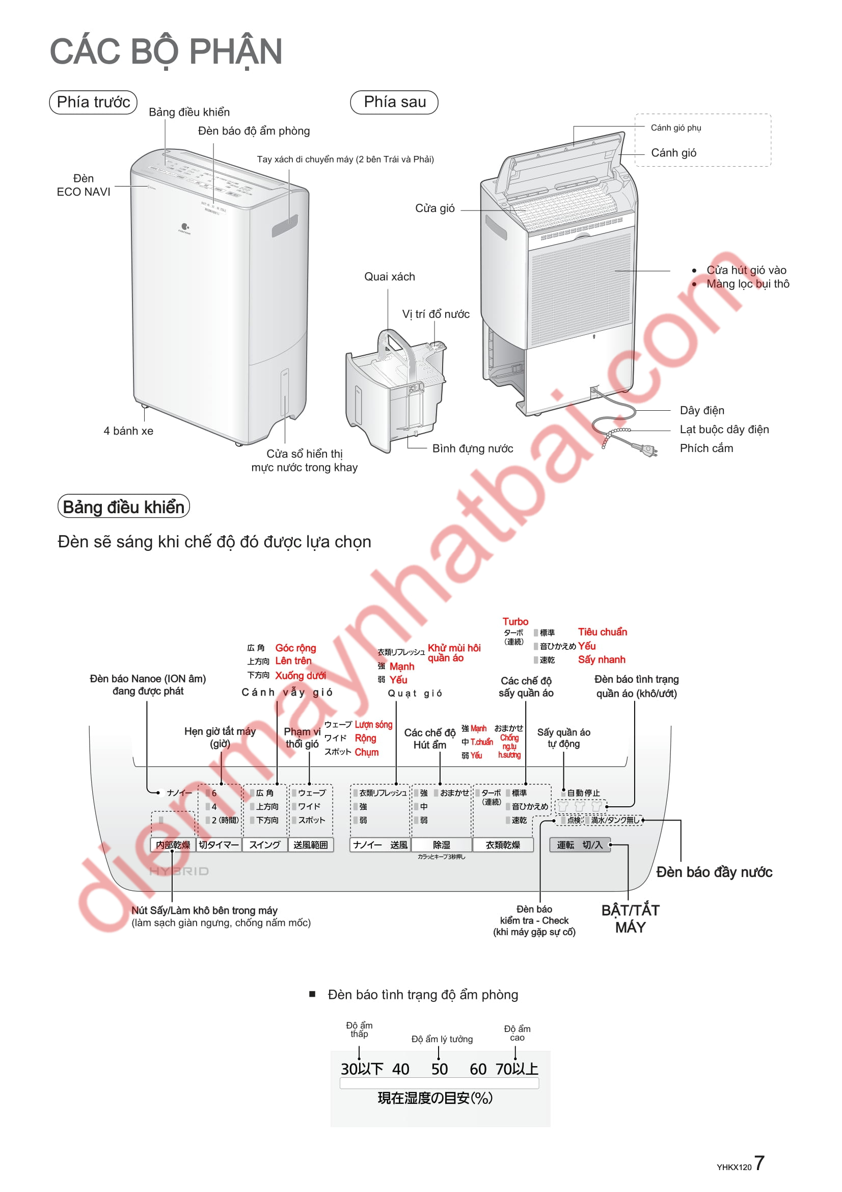 Hướng dẫn sử dụng máy hút ẩm Panasonic F-YHKX120