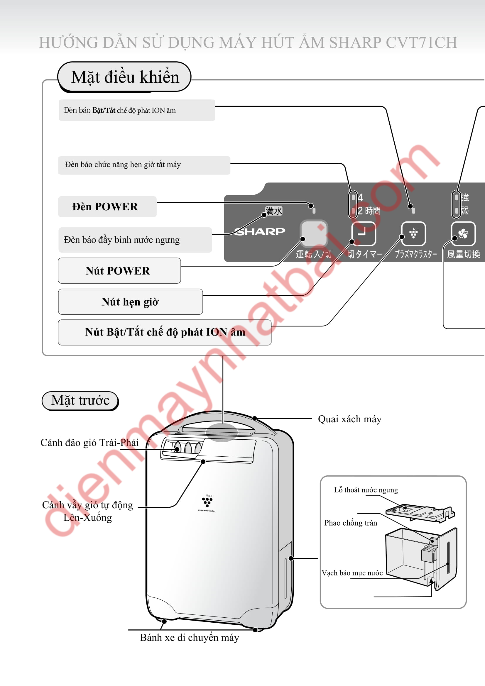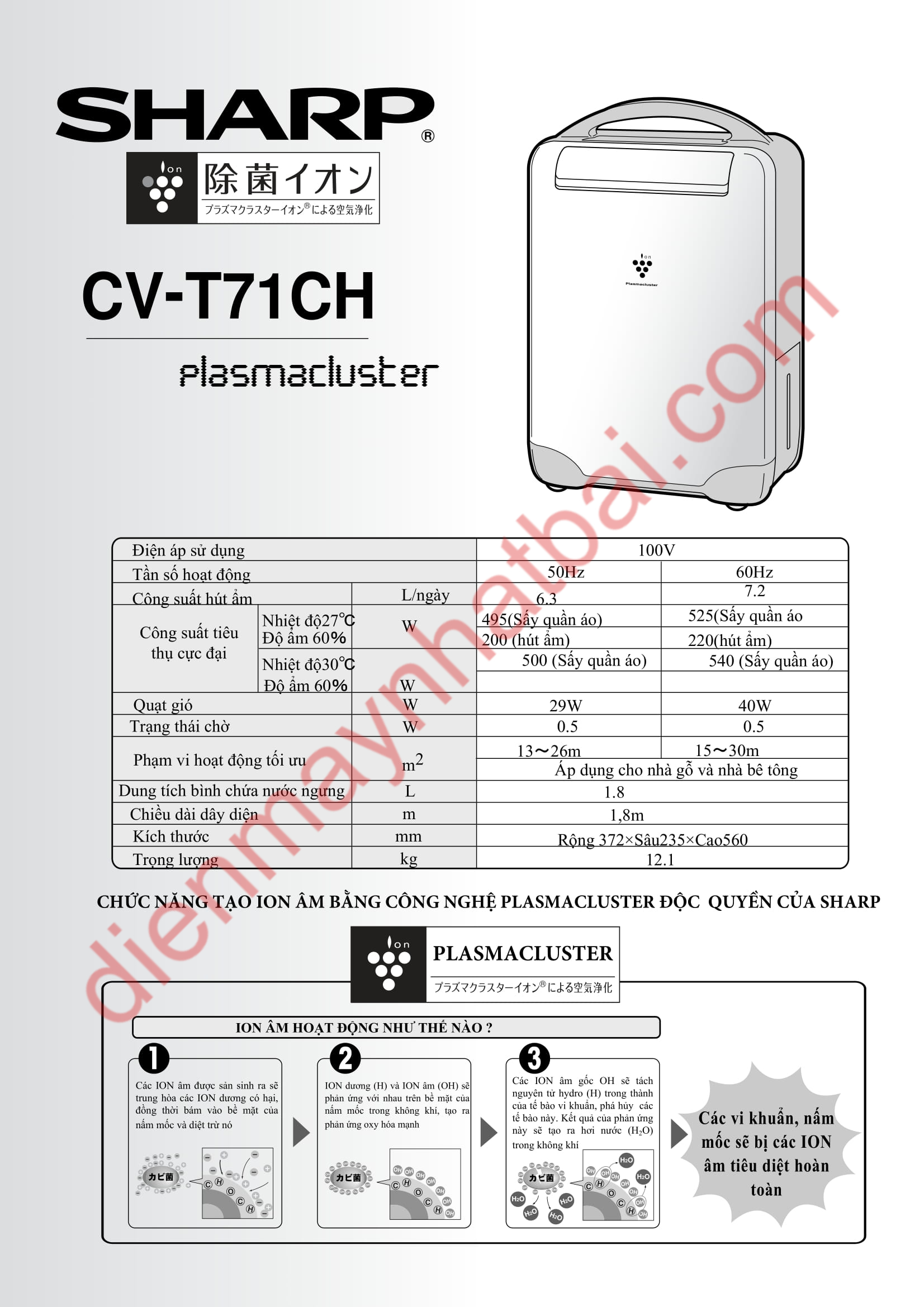 dienmaynhatbai.com chia sẻ hướng dẫn sử dụng máy hút ẩm Sharp CV-T71CH được dịch nguyên văn từ catalogue của nhà sản xuất.