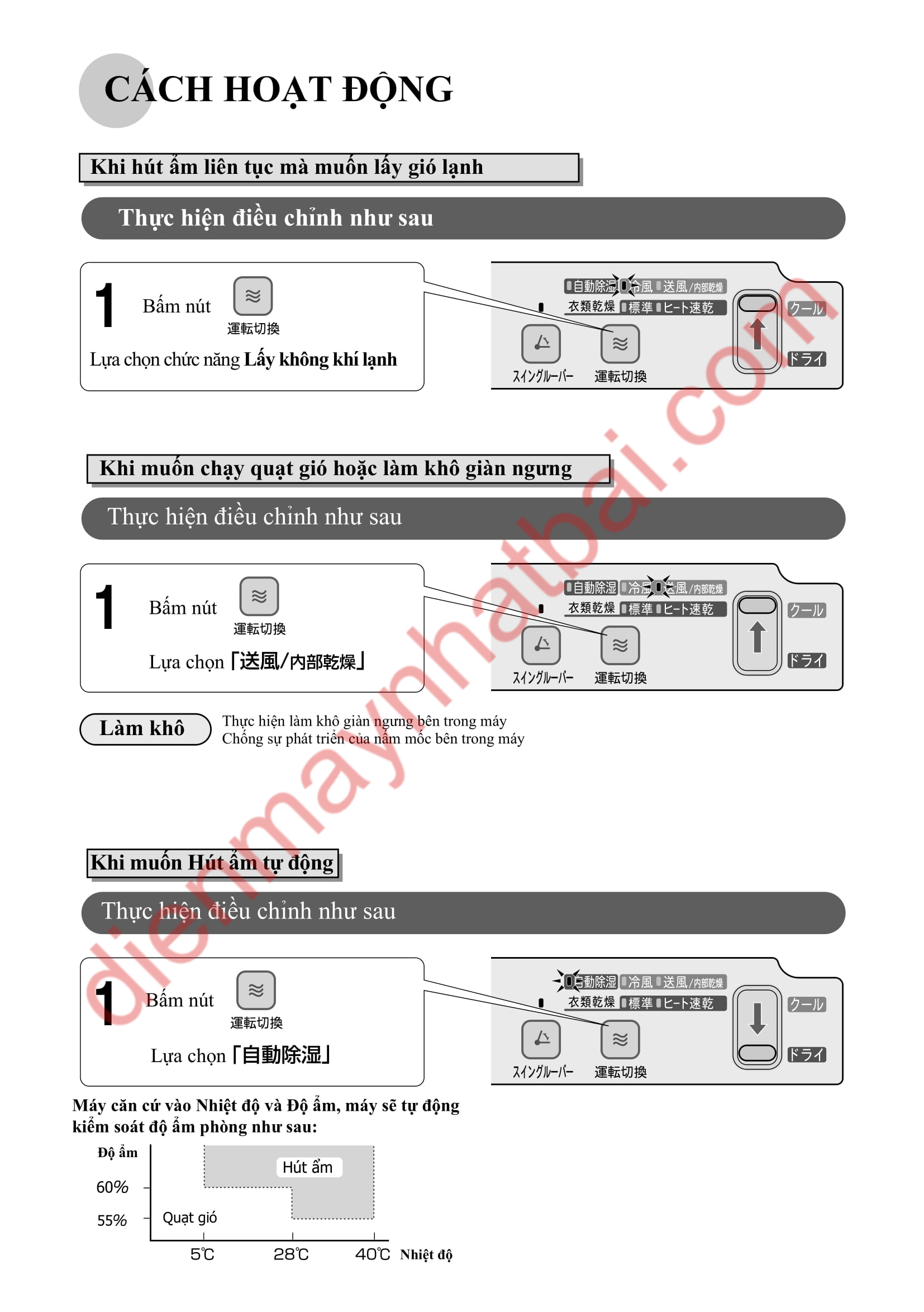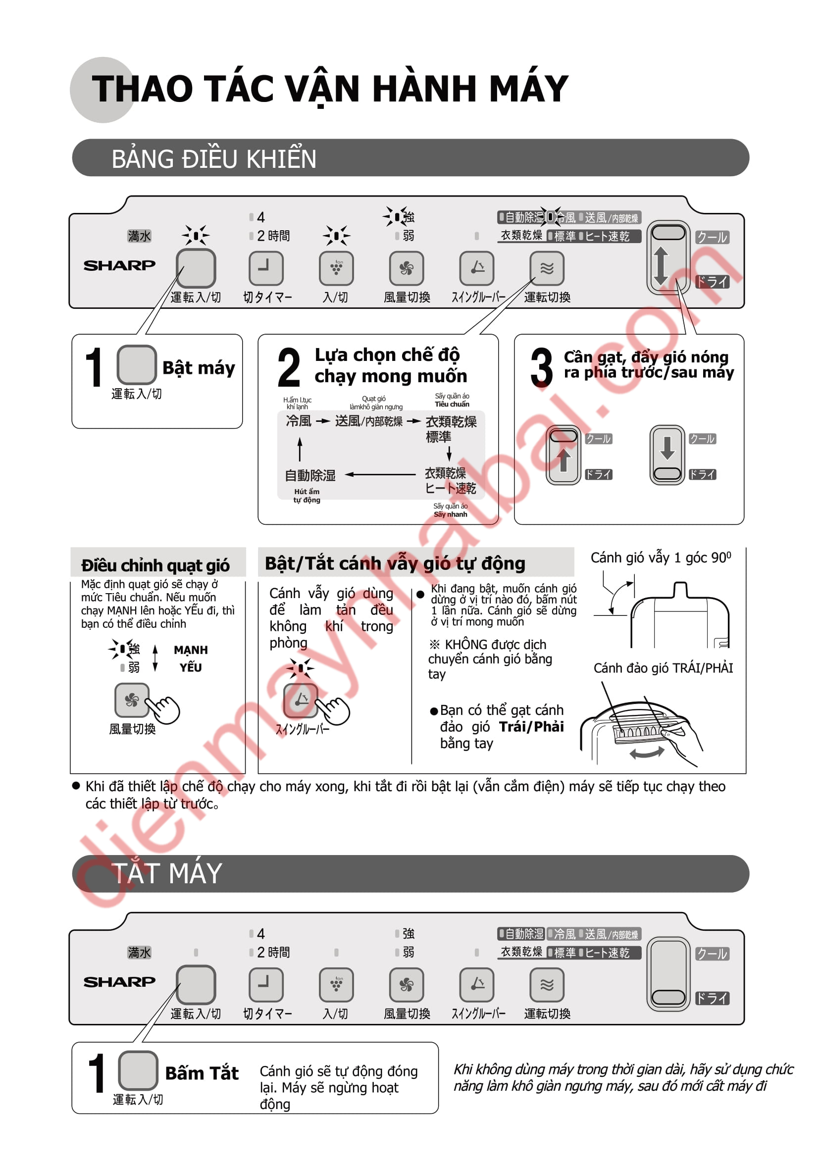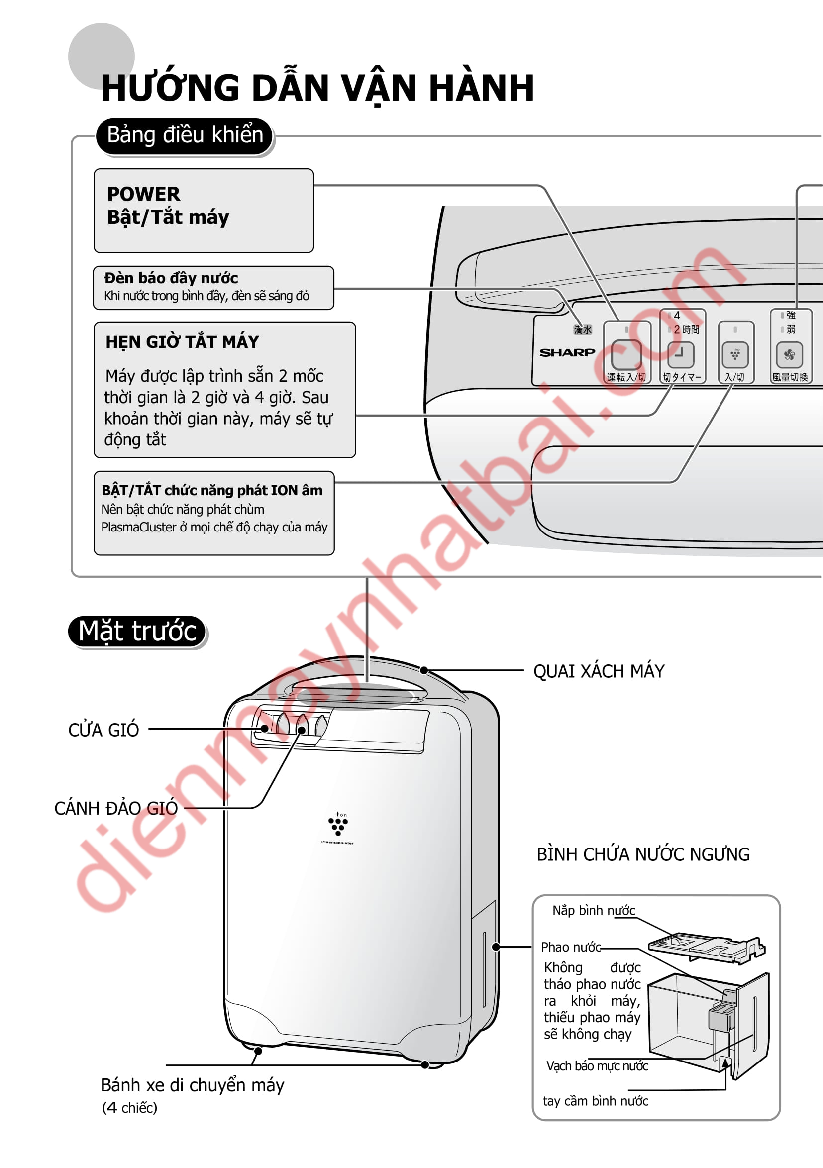 dienmaynhatbai.com chia sẻ hướng dẫn sử dụng máy hút ẩm Sharp CV-W80CH được dịch nguyên văn từ catalogue của nhà sản xuất.