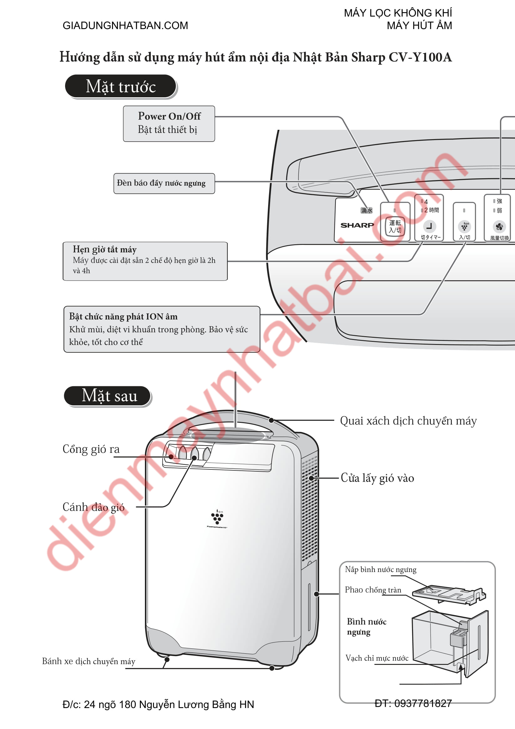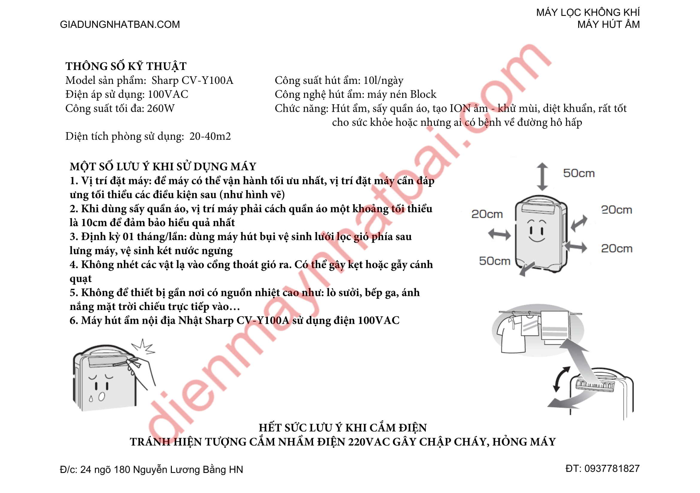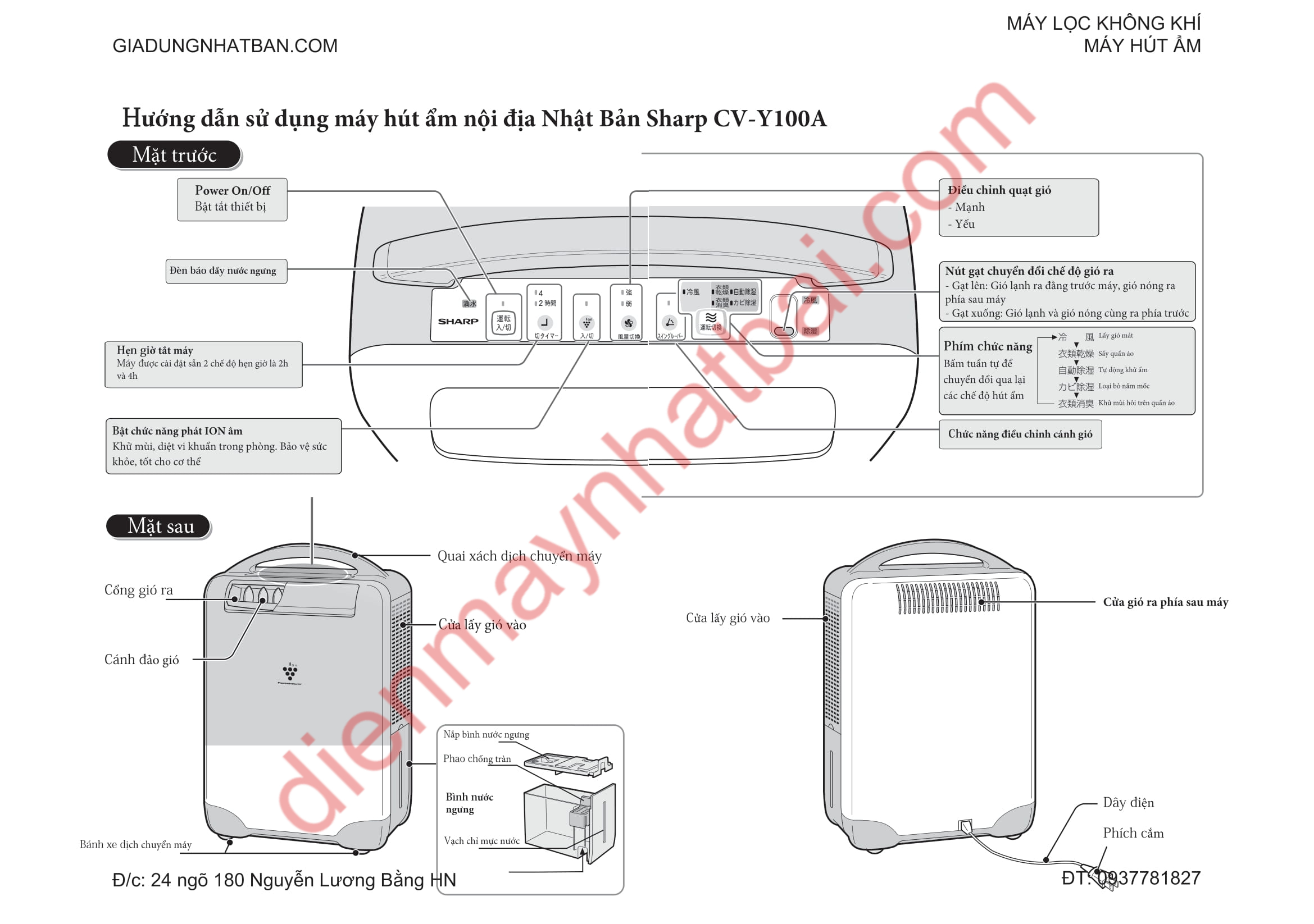 dienmaynhatbai.com chia sẻ hướng dẫn sử dụng máy hút ẩm Sharp CV-Y100A được dịch nguyên văn từ catalogue của nhà sản xuất.