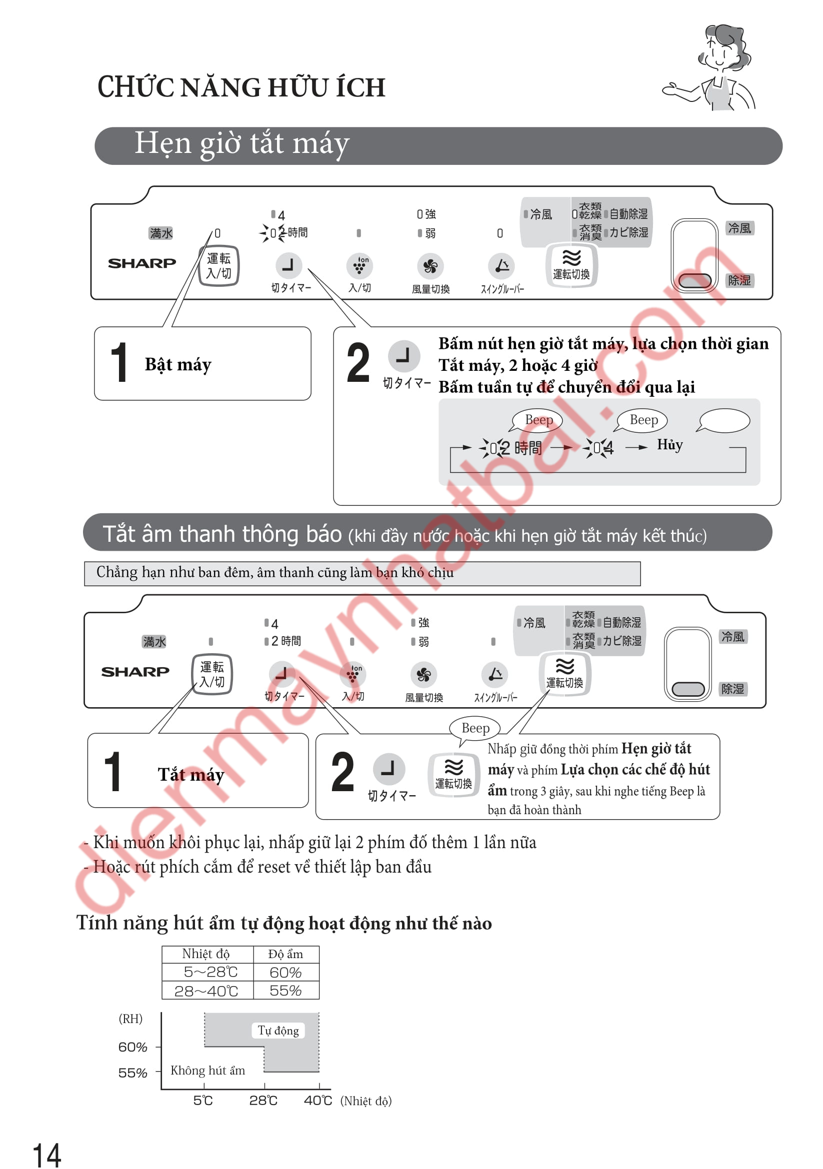 Hướng dẫn sử dụng máy hút ẩm Sharp CV-Y100A
