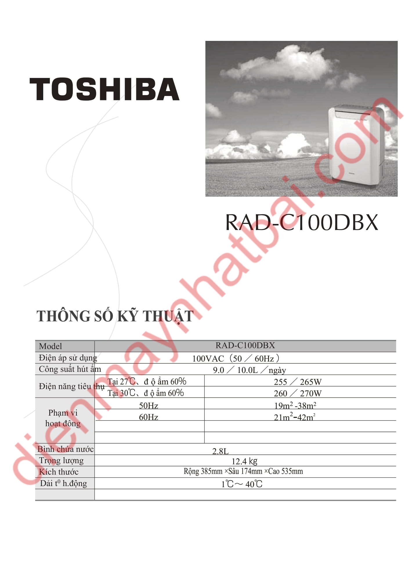 dienmaynhatbai.com chia sẻ hướng dẫn sử dụng máy hút ẩm Toshiba RAD-100DBX được dịch nguyên văn từ catalogue của nhà sản xuất.