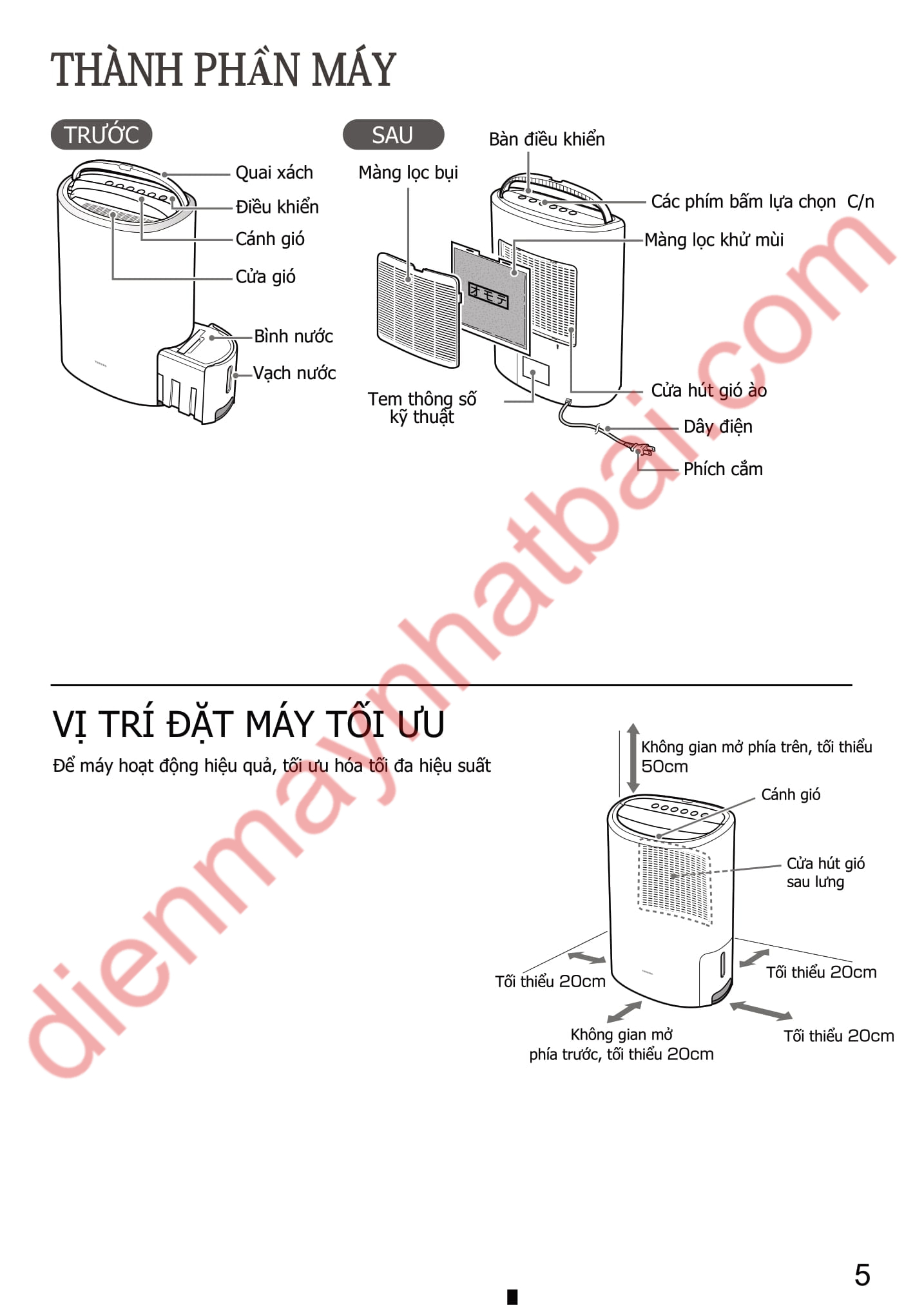 Hướng dẫn sử dụng máy hút ẩm Toshiba RAD-P63