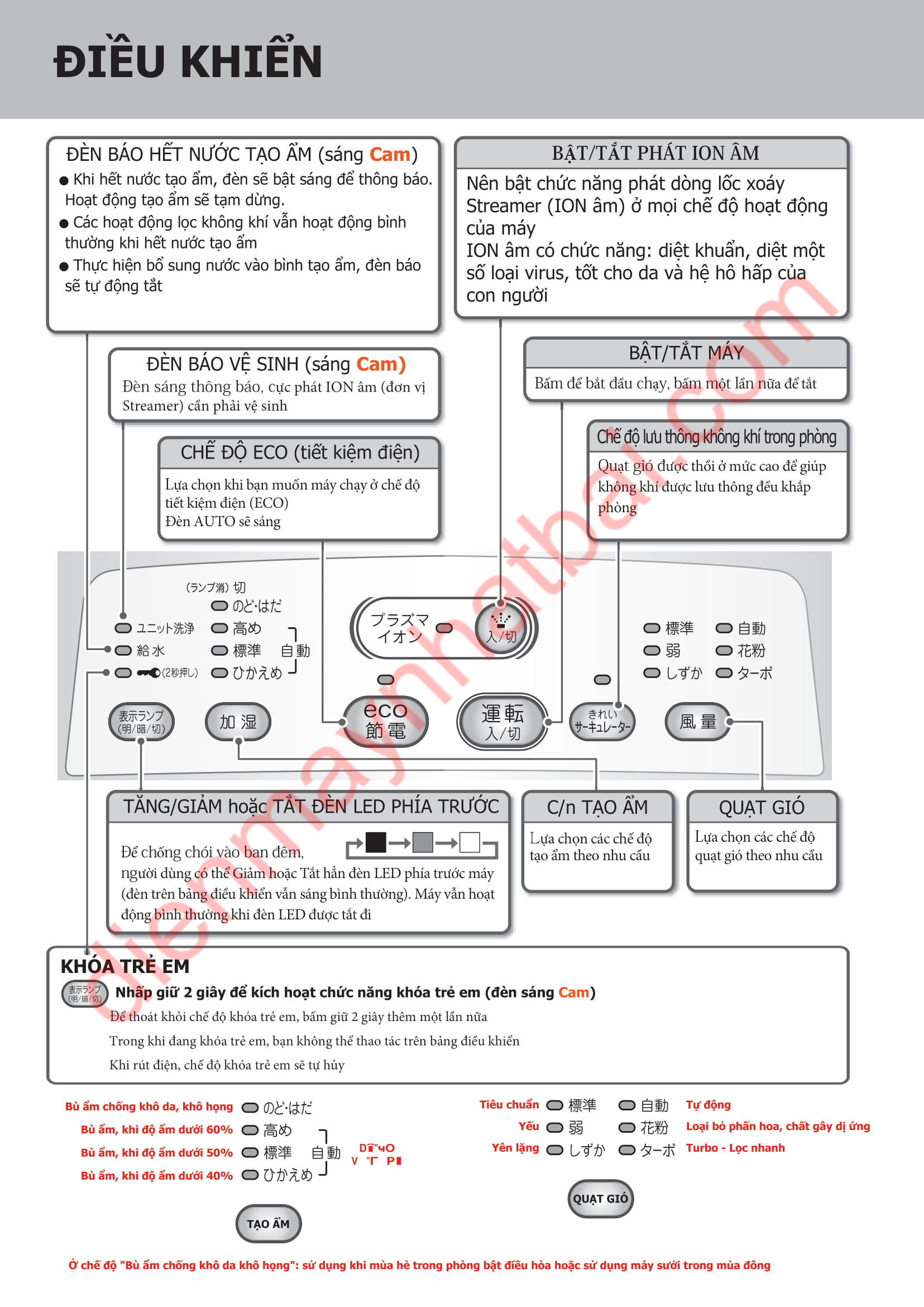dienmaynhatbai.com chia sẻ hướng dẫn sử dụng máy lọc không khí kiêm tạo ẩm Daikin ACK55P, MCK55P được dịch nguyên văn từ catalogue của nhà sản xuất.