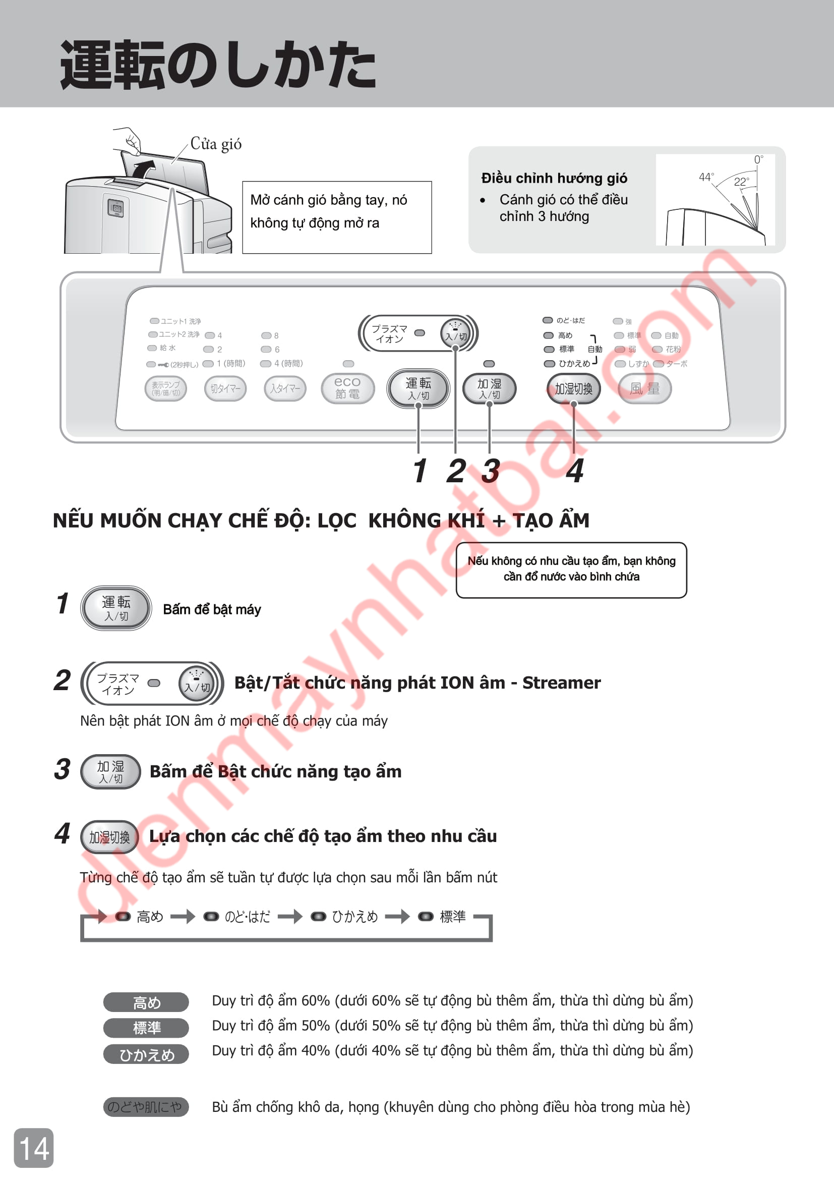 dienmaynhatbai.com chia sẻ hướng dẫn sử dụng máy lọc không khí kiêm tạo ẩm Daikin ACK70N, MCK70N được dịch nguyên văn từ catalogue của nhà sản xuất.