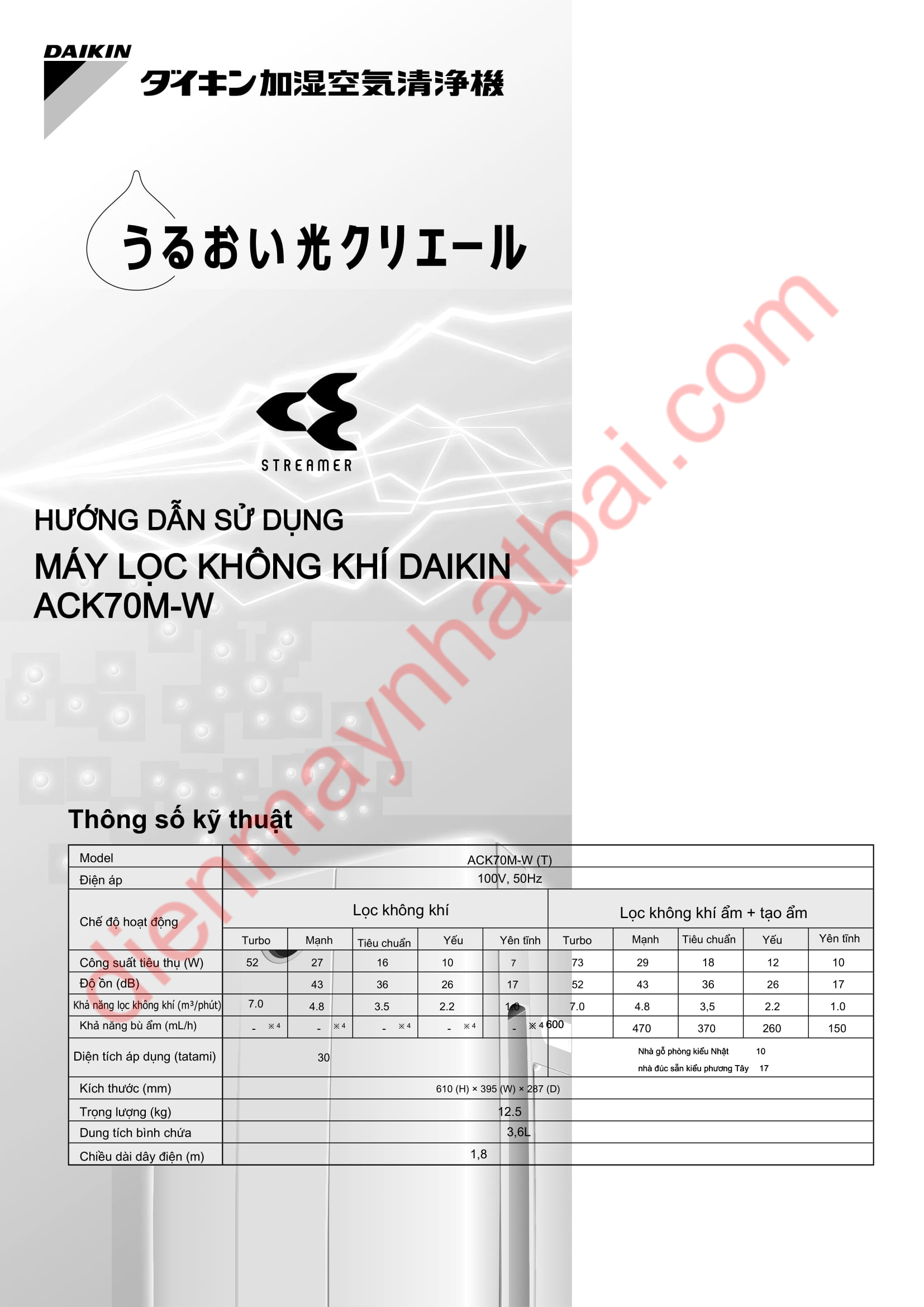 Hướng Dẫn Sử Dụng Máy Daikin MCK70M, ACK70M