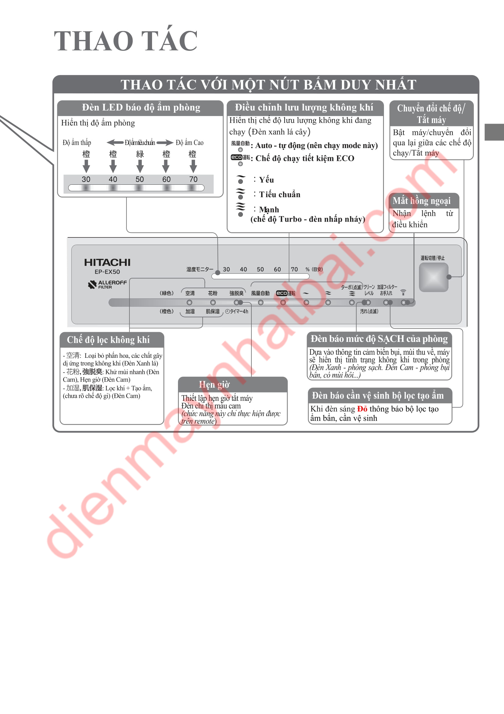 dienmaynhatbai.com chia sẻ hướng dẫn sử dụng máy lọc không khí kiêm tạo ẩm Hitachi EP-EX50 được dịch nguyên văn từ catalogue của nhà sản xuất.