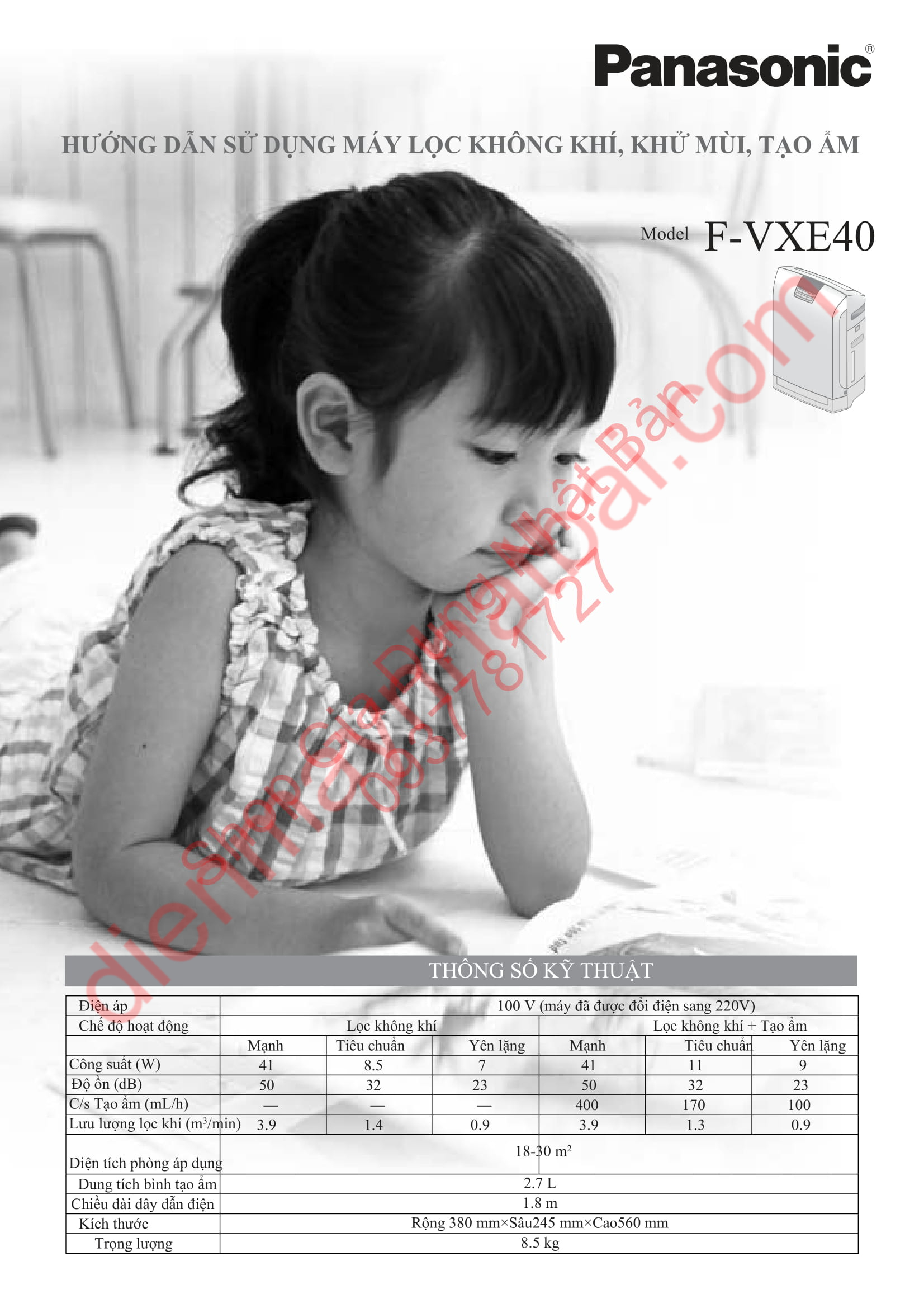 Hướng Dẫn Sử Dụng Máy Panasonic F-VXE40