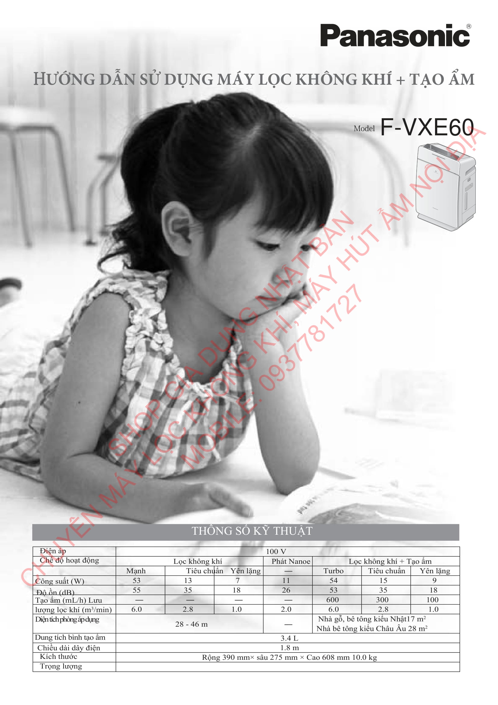Hướng Dẫn Sử Dụng Máy Panasonic F-VXE60