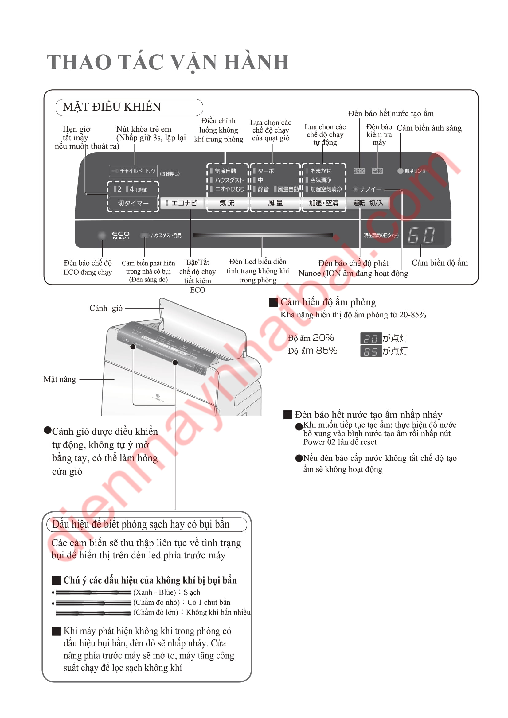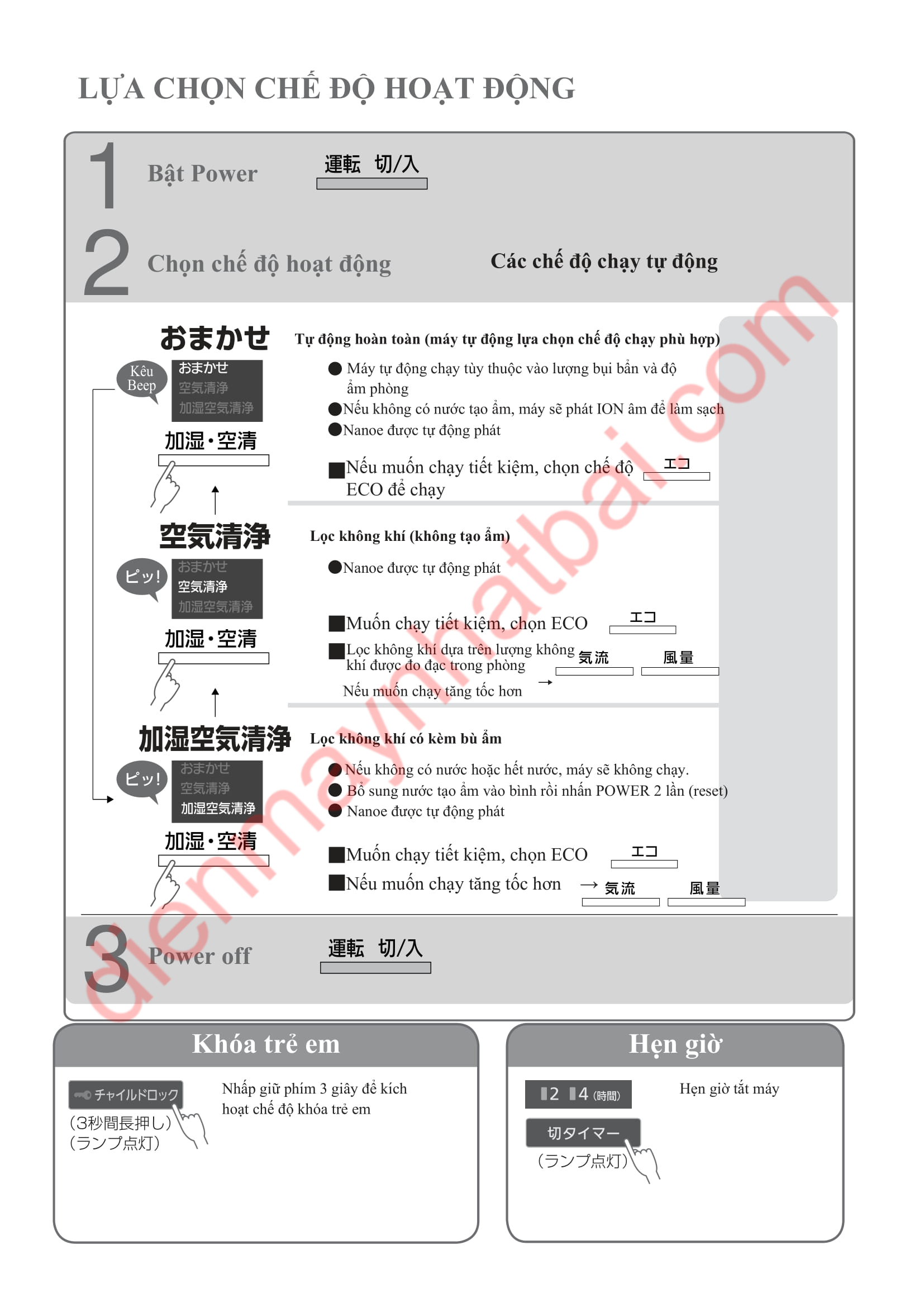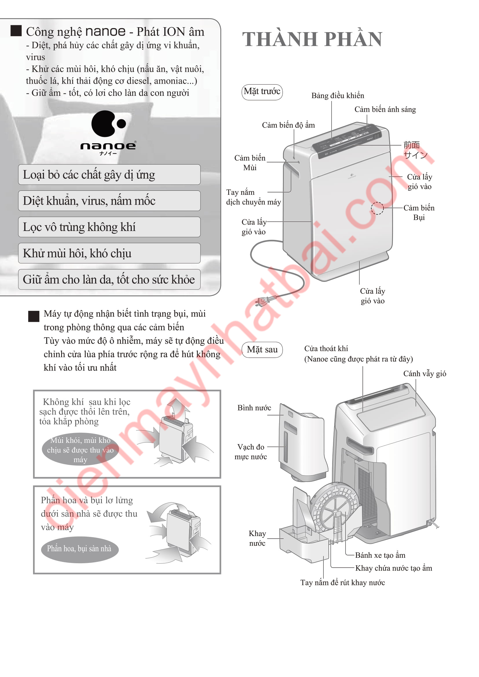 dienmaynhatbai.com chia sẻ hướng dẫn sử dụng máy lọc không khí kiêm tạo ẩm Panasonic F-VXF70 được dịch nguyên văn từ catalogue của nhà sản xuất.