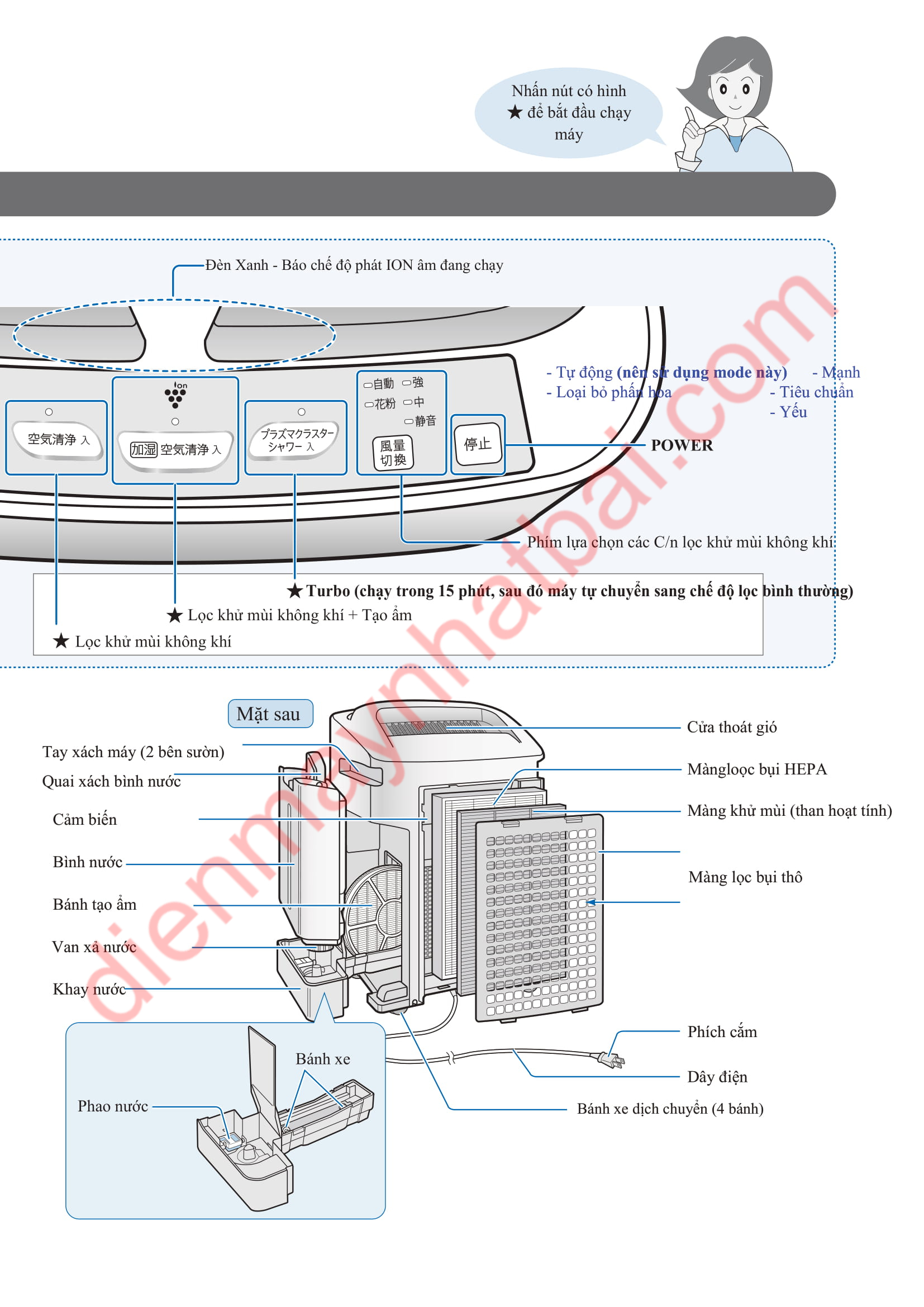 dienmaynhatbai.com chia sẻ hướng dẫn sử dụng máy lọc không khí kiêm tạo ẩm Sharp KC-450Y3 được dịch nguyên văn từ catalogue của nhà sản xuất.