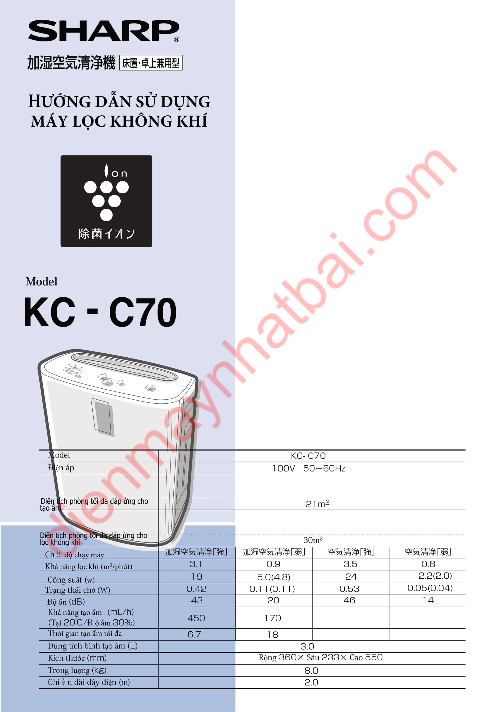 Hướng Dẫn Sử Dụng Máy Sharp KC-C70