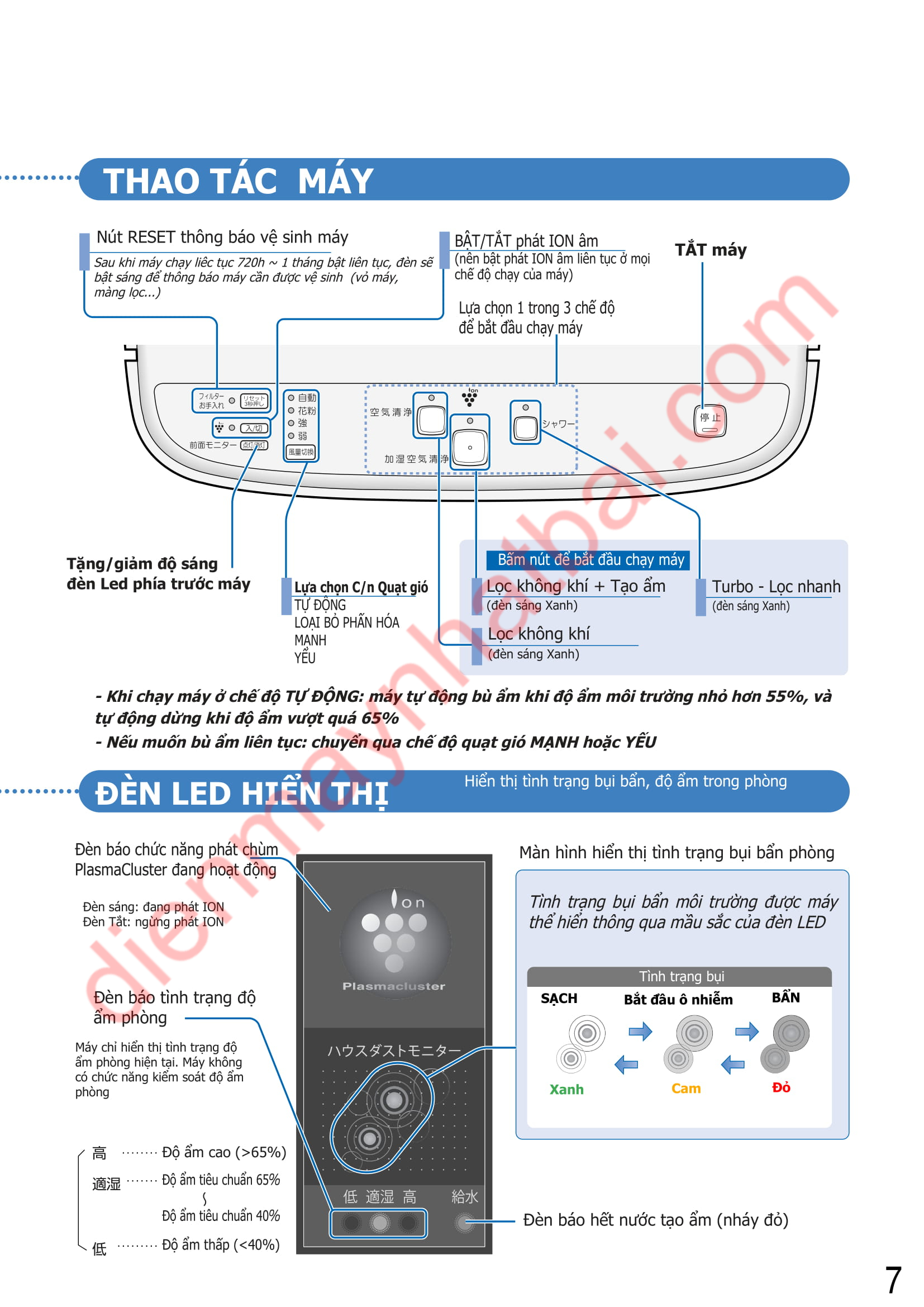 dienmaynhatbai.com chia sẻ hướng dẫn sử dụng máy lọc không khí kiêm tạo ẩm Sharp KC-C70 được dịch nguyên văn từ catalogue của nhà sản xuất.