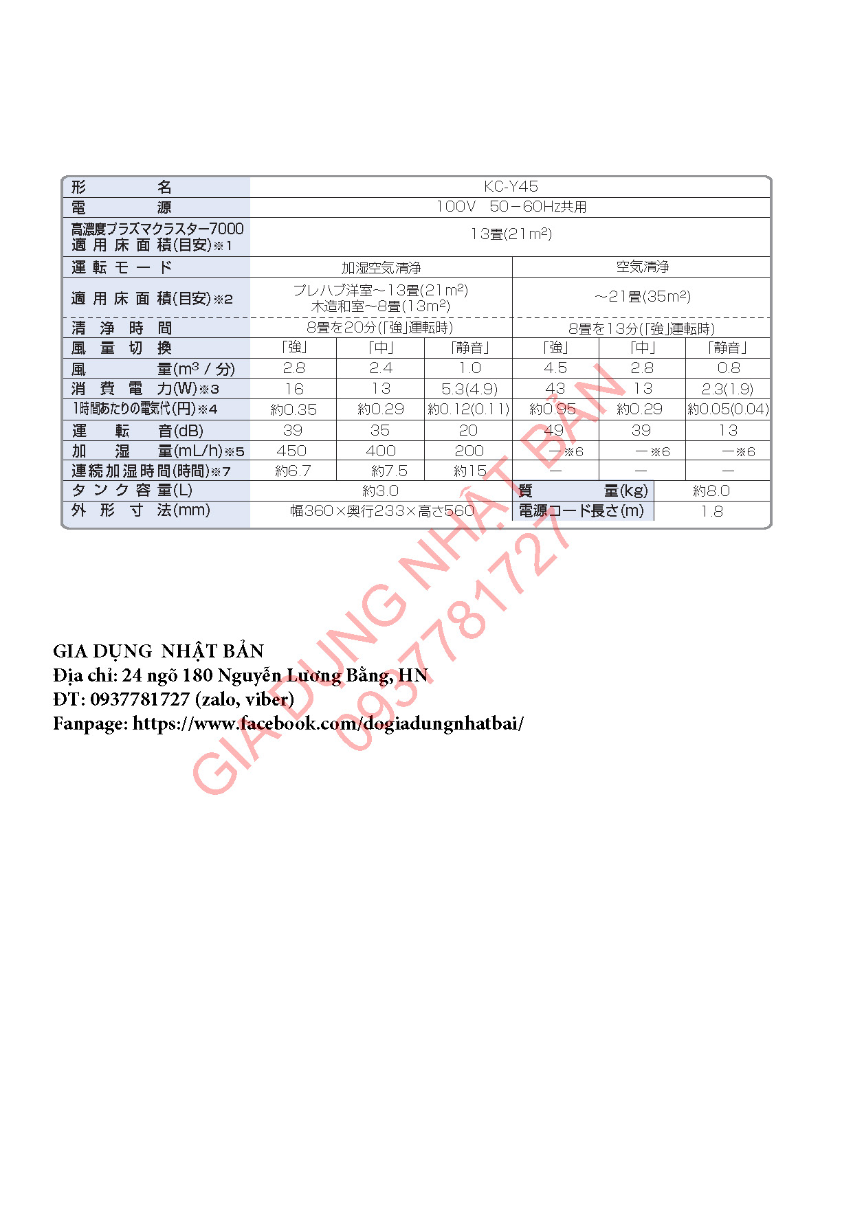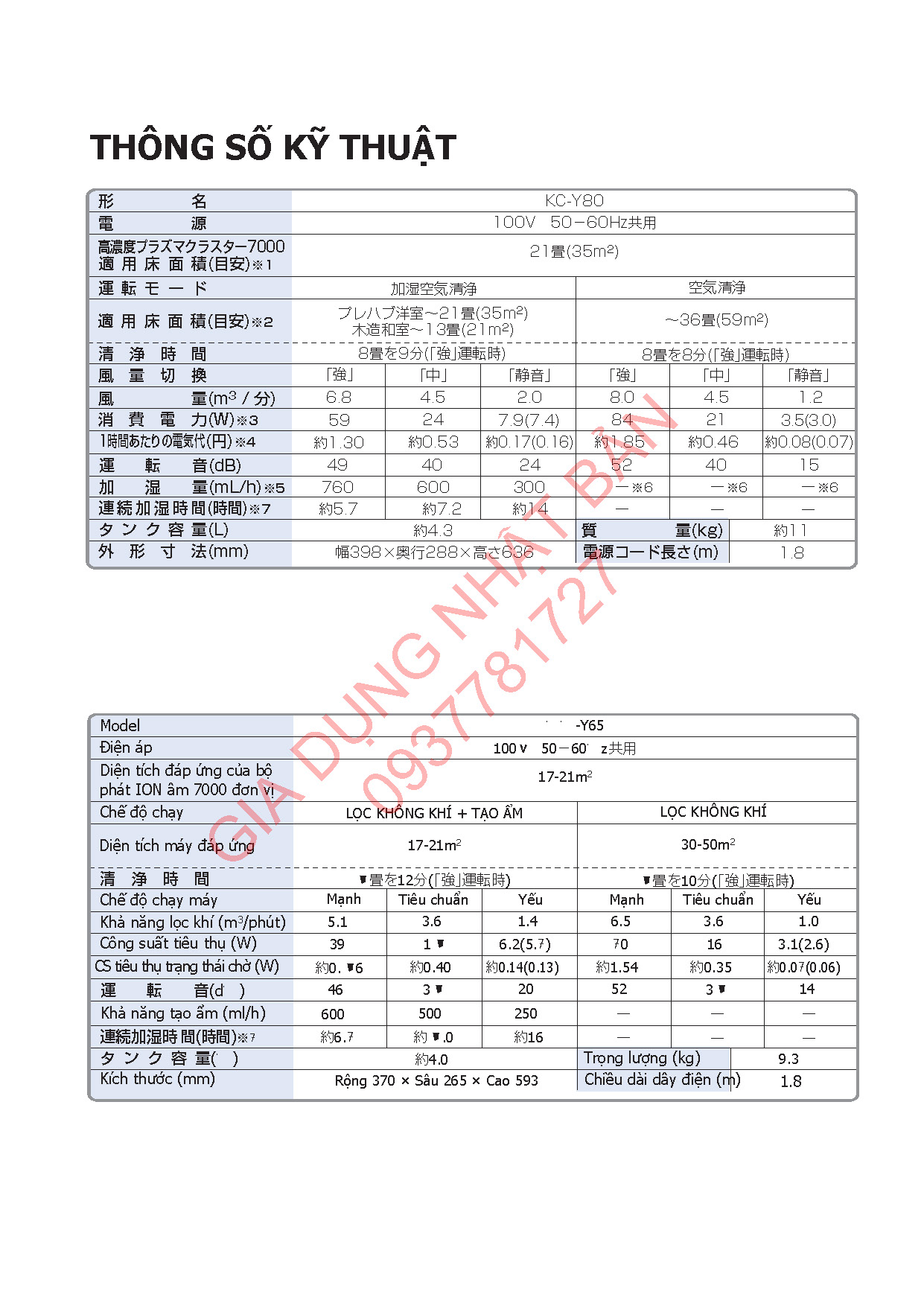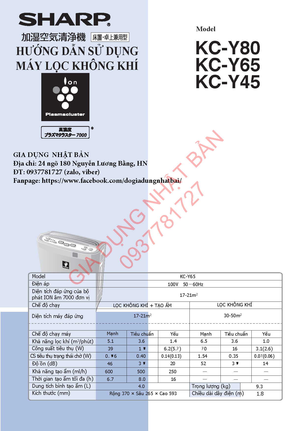Hướng Dẫn Sử Dụng Máy Sharp KC-Y45, KC-Y65, KC-Y80