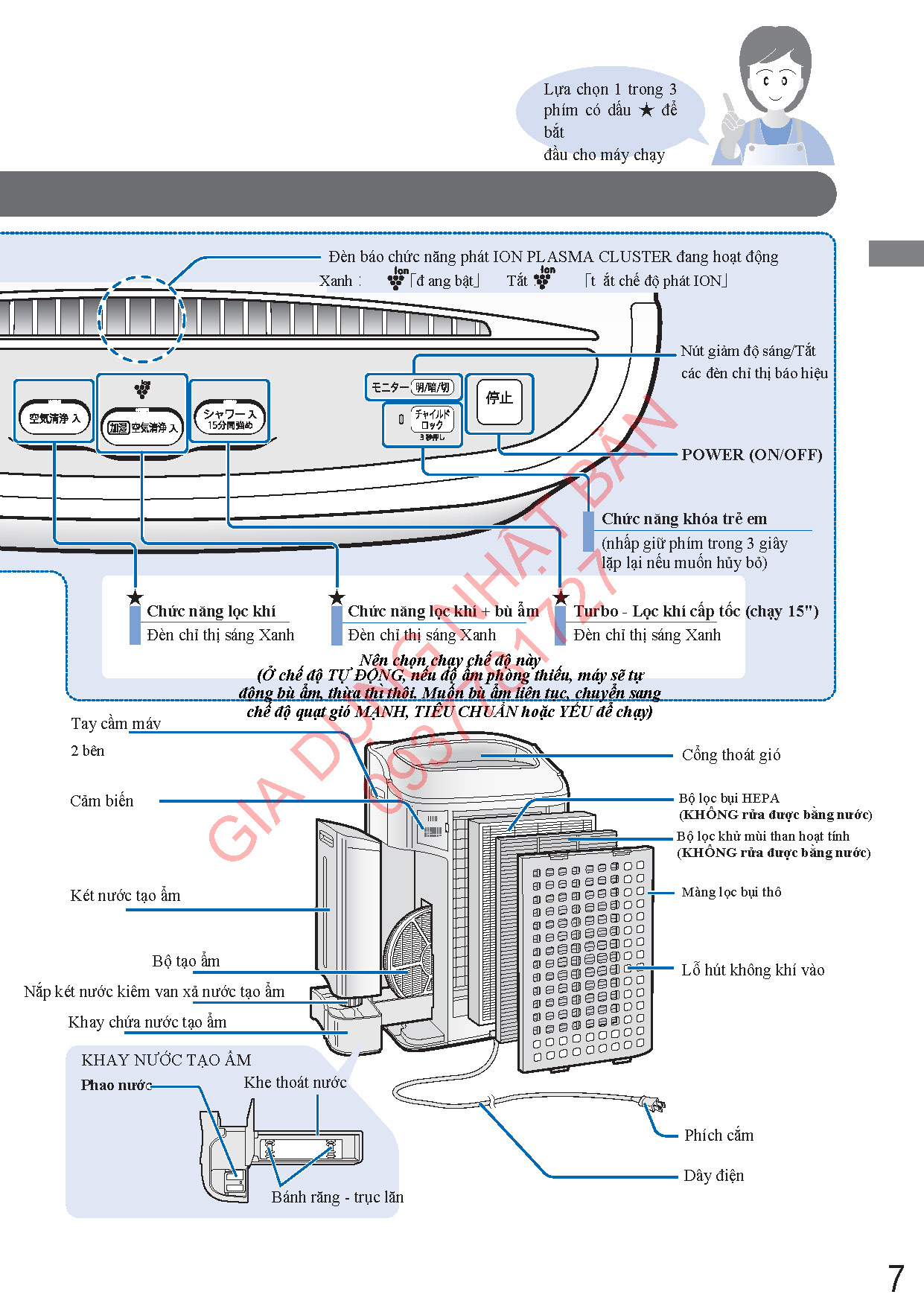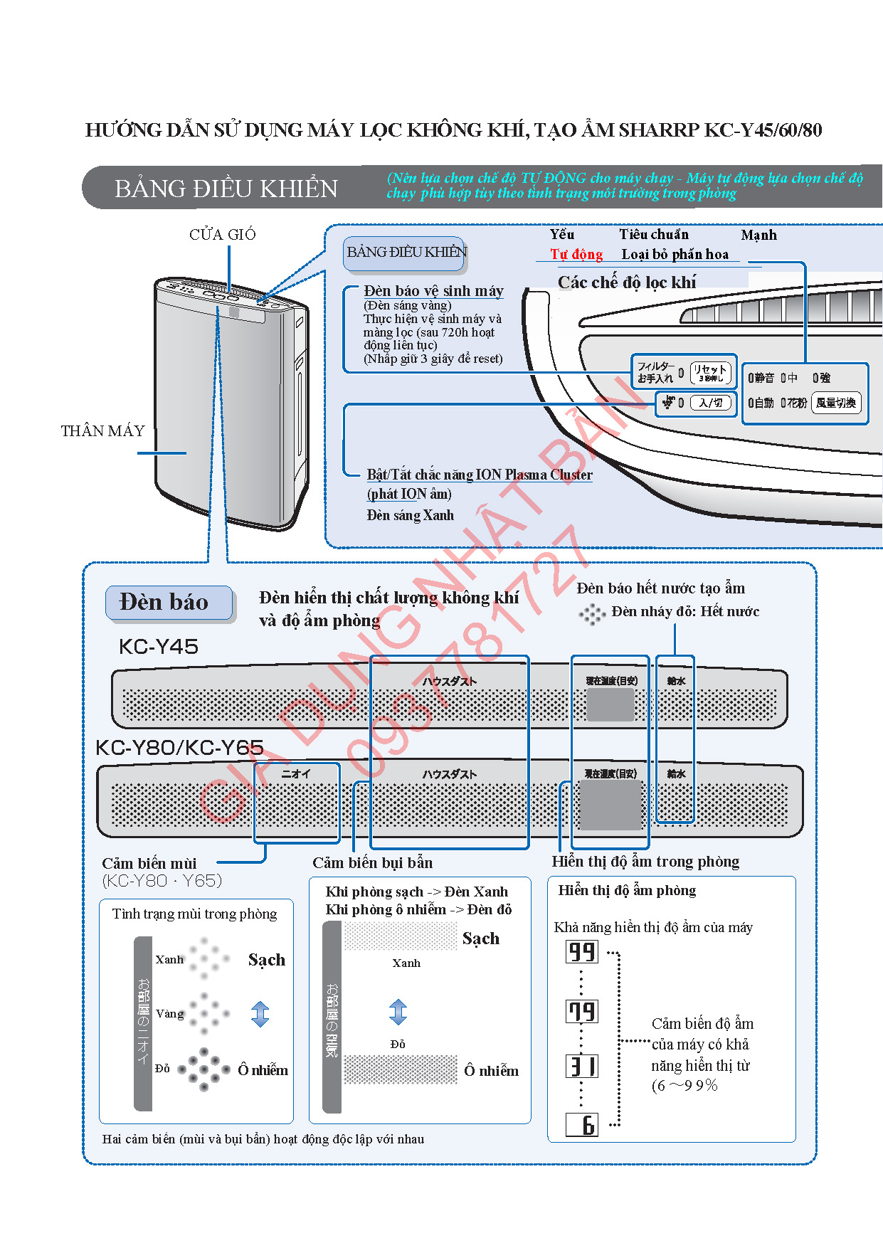 Hướng dẫn sử dụng máy Sharp KC-Y45, KC-Y65, KC-Y80