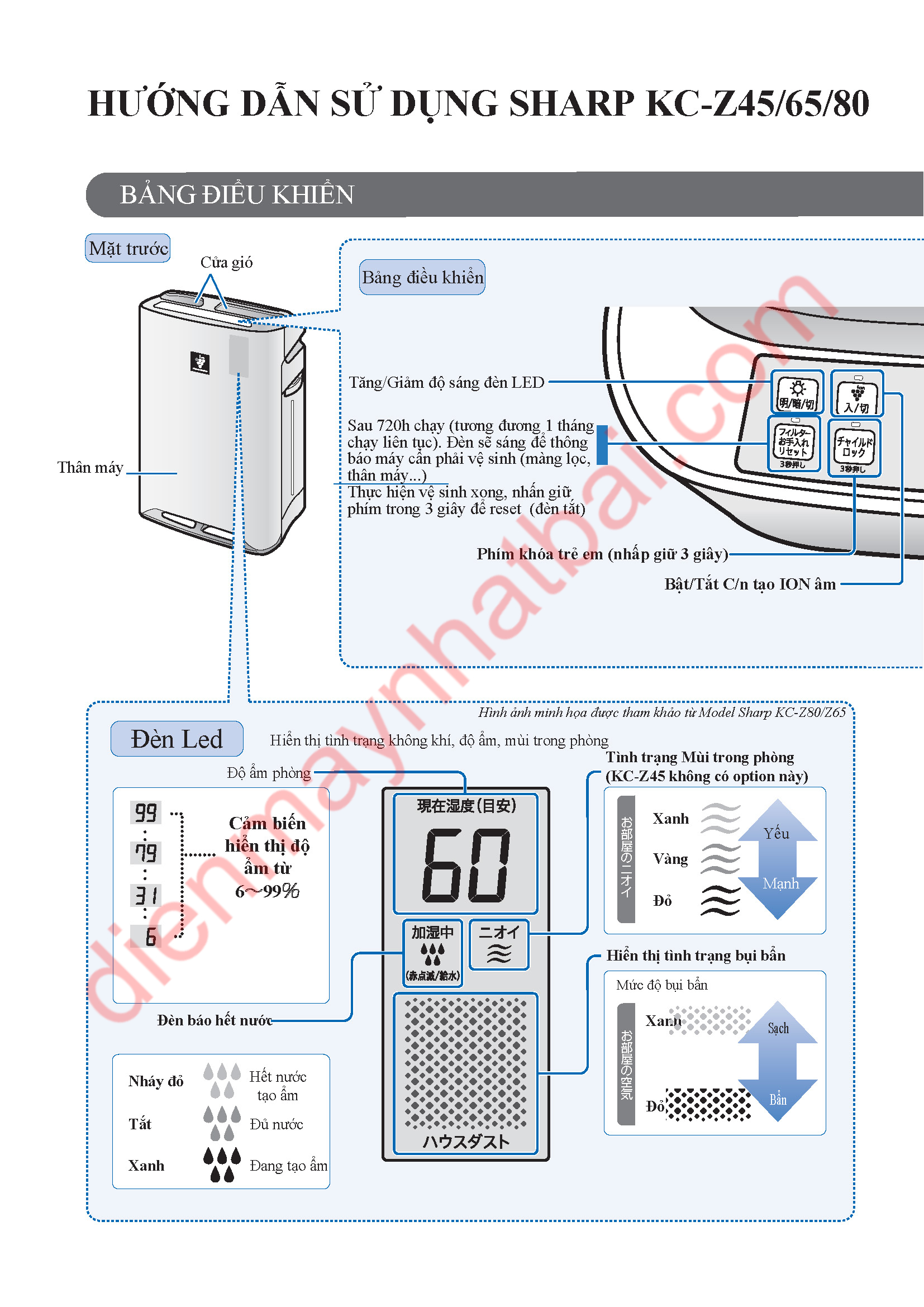 Hướng Dẫn Sử Dụng Máy Sharp KC-Z45, KC-Z65, KC-Z80