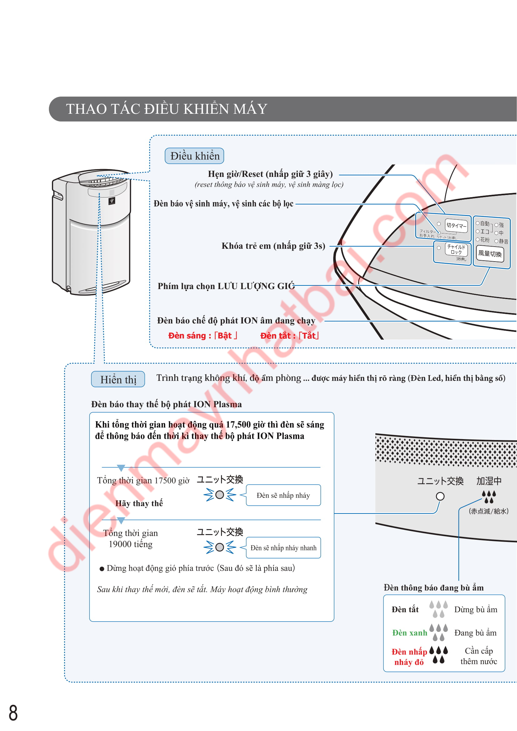 dienmaynhatbai.com chia sẻ hướng dẫn sử dụng máy lọc không khí kiêm tạo ẩm Sharp KI-AX70, KI-AX80 được dịch nguyên văn từ catalogue của nhà sản xuất.