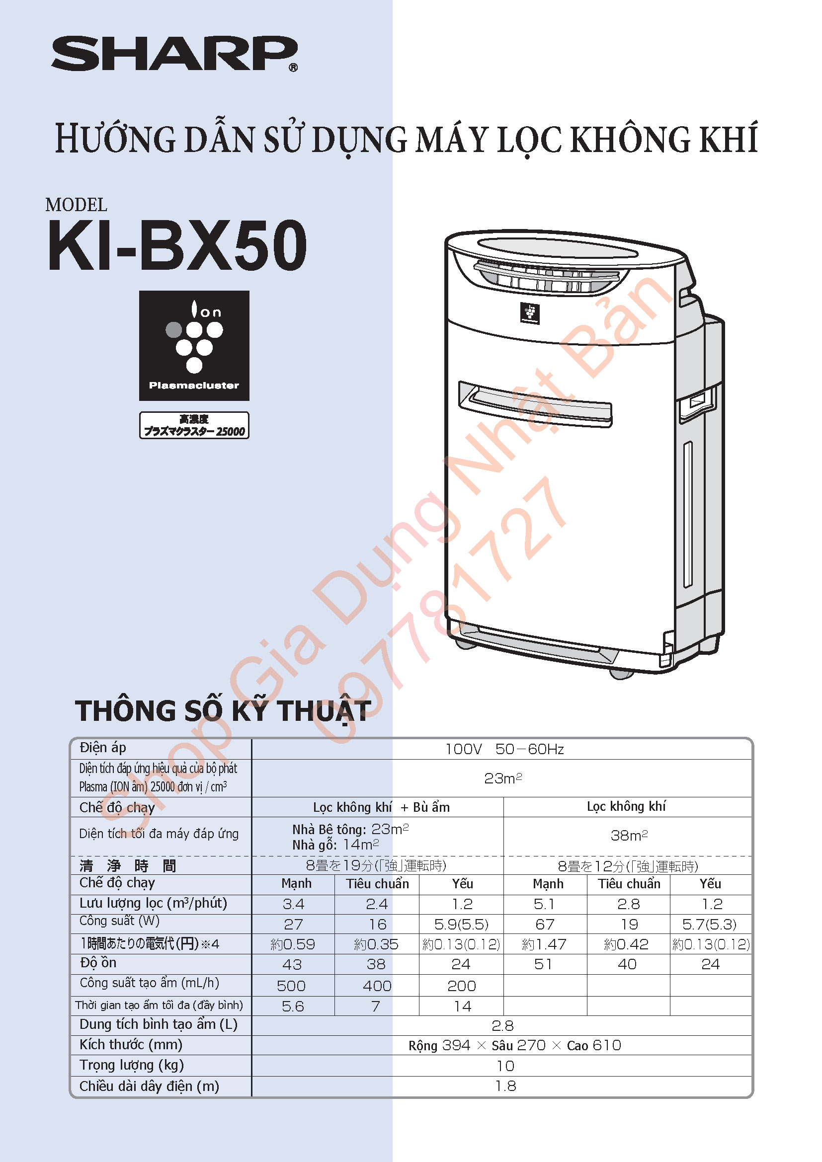 dienmaynhatbai.com chia sẻ hướng dẫn sử dụng máy lọc không khí kiêm tạo ẩm Sharp KI-BX50 được dịch nguyên văn từ catalogue của nhà sản xuất.
