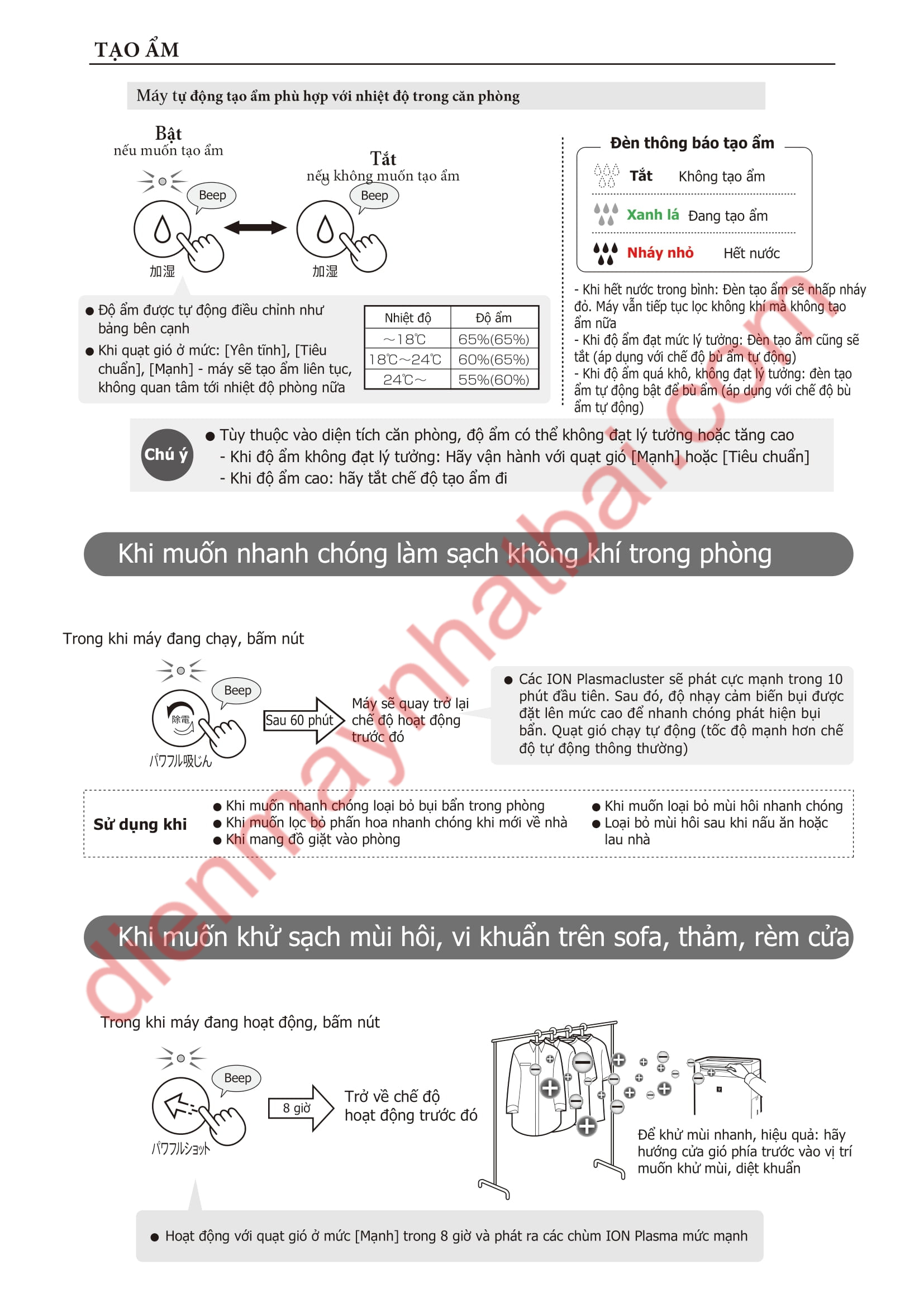 dienmaynhatbai.com chia sẻ hướng dẫn sử dụng máy lọc không khí kiêm tạo ẩm Sharp KI-GS50 được dịch nguyên văn từ catalogue của nhà sản xuất.