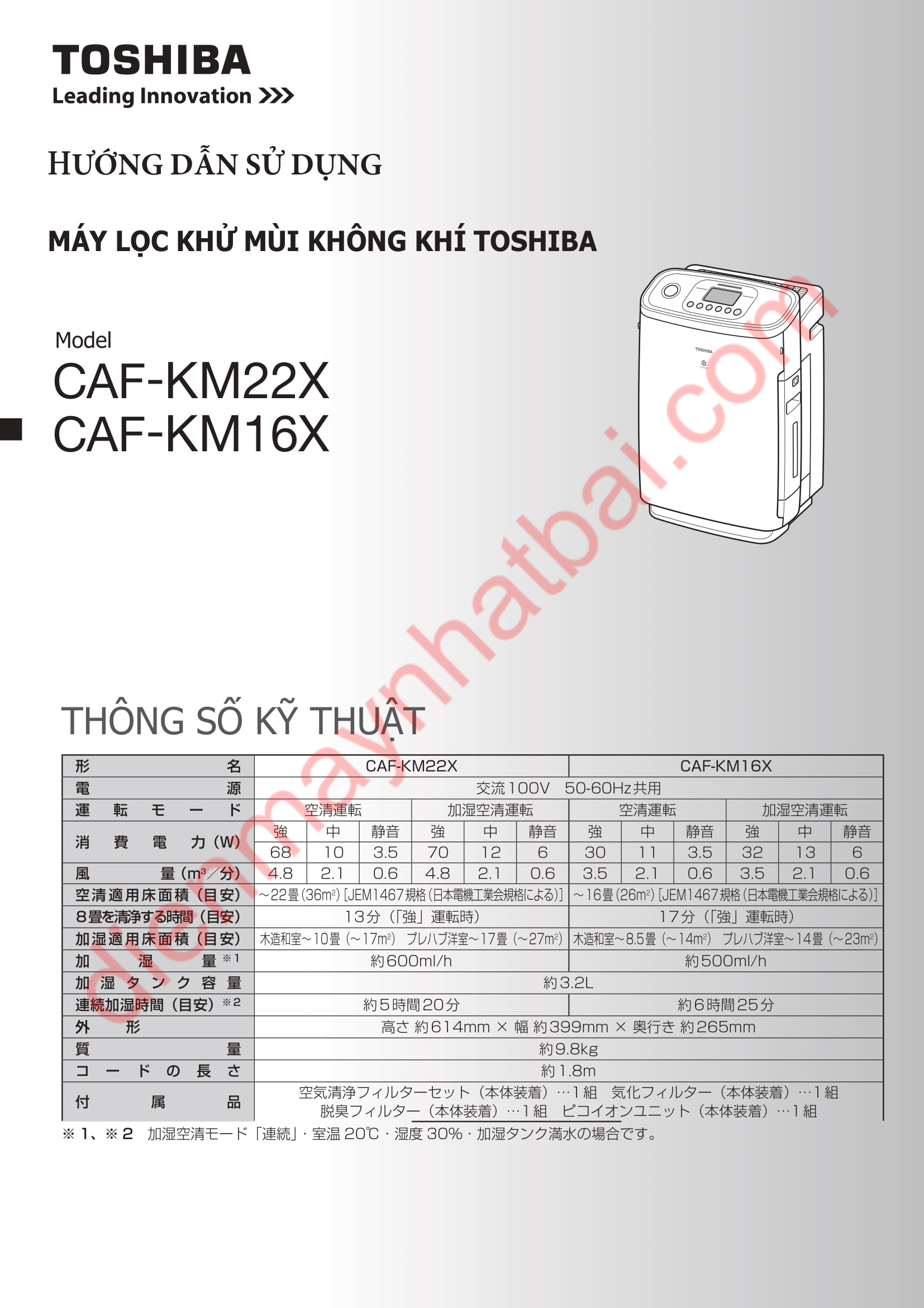 dienmaynhatbai.com chia sẻ hướng dẫn sử dụng máy lọc không khí kiêm tạo ẩm Toshiba CAF-KM16X được dịch nguyên văn từ catalogue của nhà sản xuất.