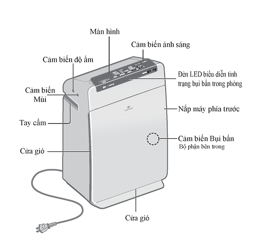 Máy được trang bị đầy đủ các cảm biến độc lập: cảm biến Bụi, cảm biến Mùi, cảm biến nhiệt độ và cảm biến ánh sáng. Điều này giúp cho máy có thể hoạt động hoàn toàn độc lập, tự động lựa chọn chế độ chạy phù hợp, tối ưu nhất cho môi trường trong phòng bạn. Người dùng hoàn toàn không cần phải can thiệp, lựa chọn bằng tay thủ công. Đây là những tính năng đáng mơ ước trên một chiếc máy lọc không khí.